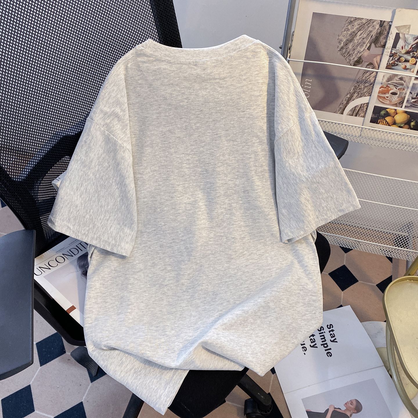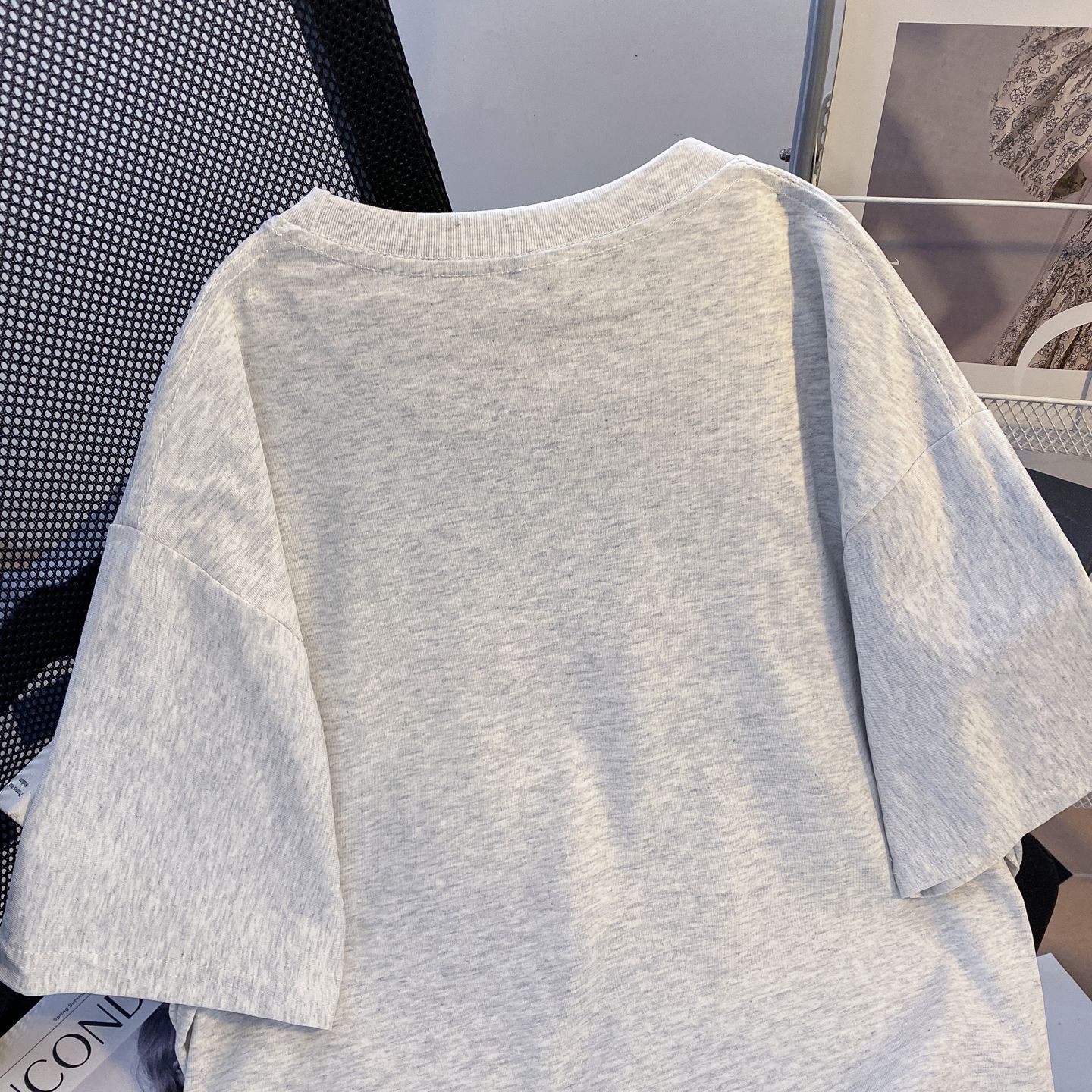 200그램 순면 이후 패키지 칼라 색상 색 후광 염색 루즈핏 티셔츠 여성 디자인 센스 프린트 슬림해 보이는 맨위 트렌디