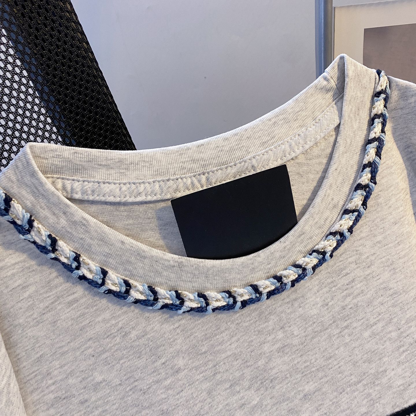 200그램 순면 이후 패키지 칼라 체크무늬 배색 삽입 어깨 반팔 티셔츠 여성 2026 여름 프린트 맨위