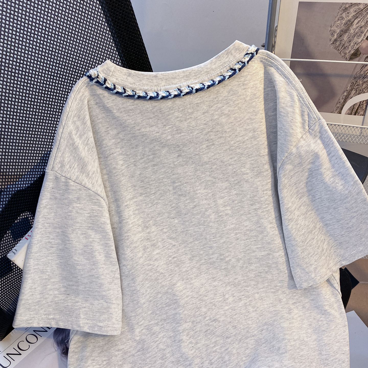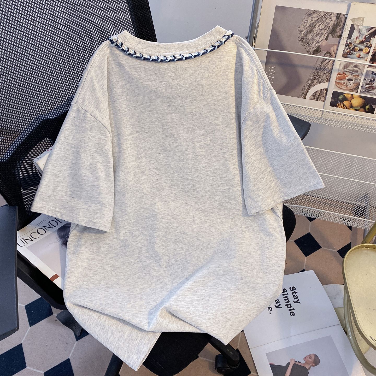 200그램 순면 이후 패키지 칼라 색상 색 후광 염색 루즈핏 티셔츠 여성 디자인 센스 프린트 슬림해 보이는 맨위 트렌디