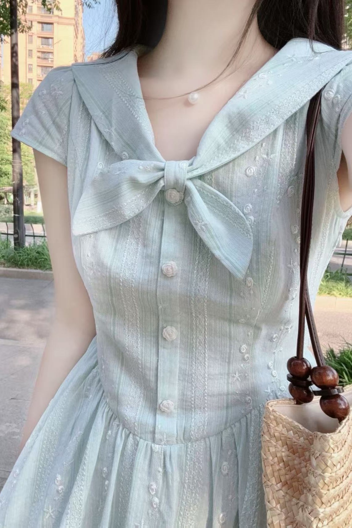 산소 부서 여고생 니트 여름 스트라이프 배색 디자인 반신 스커트 사전 여름 통기성 트렌드 펌프 로프 슬리브