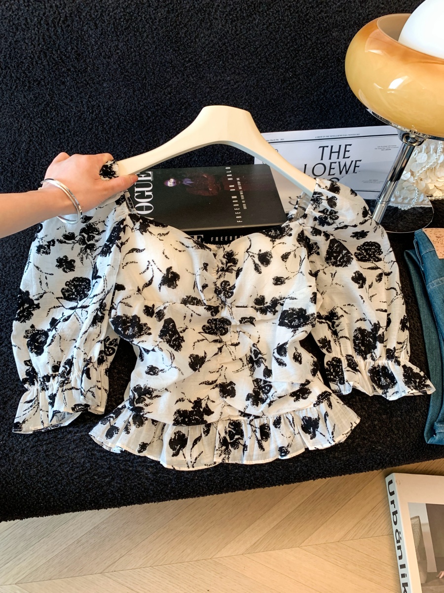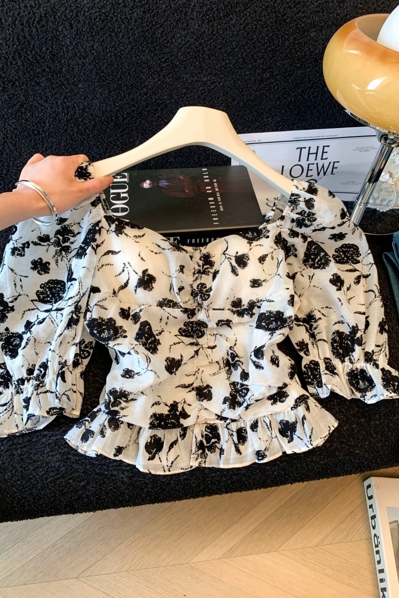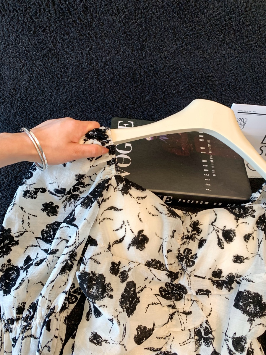 실사 2026 년 셔츠 반팔 여름 작은 청신 섹시함 프랑스식 쇄골 품격 꽃무늬 나만의 것을 가져와 라. 가슴 패드 의류