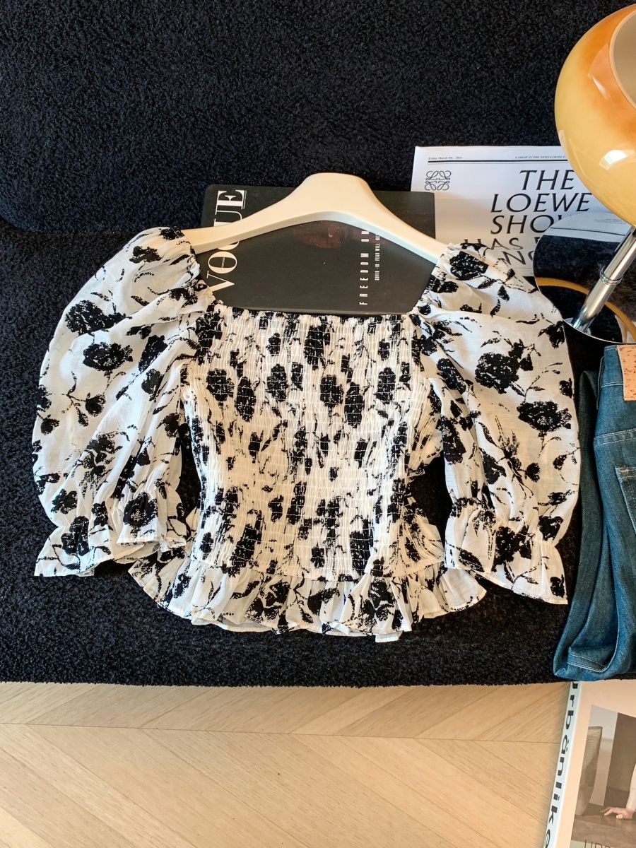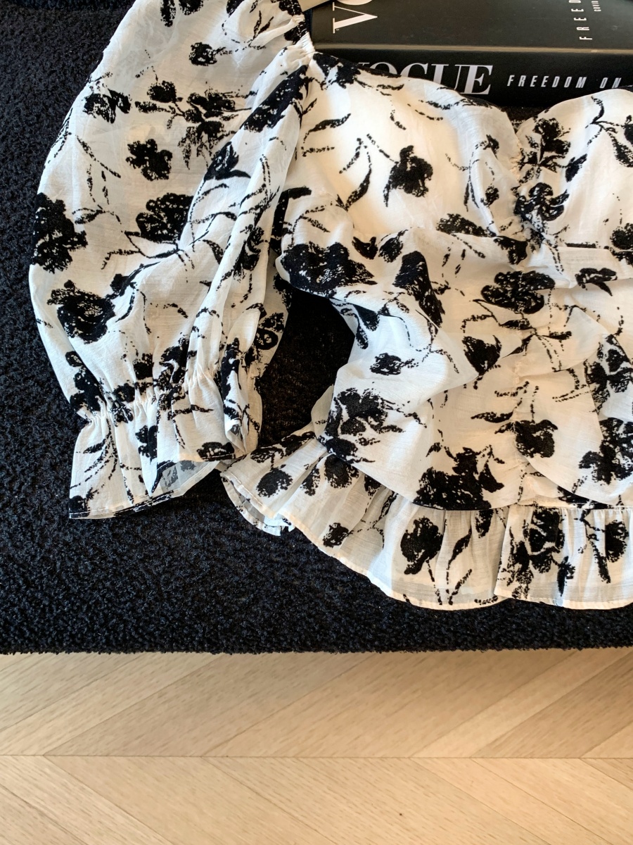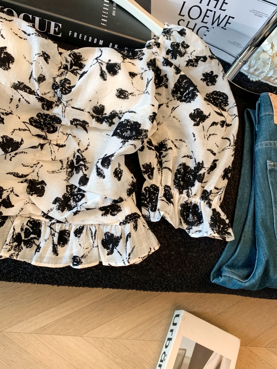 실사 단색 행침 목 오프숄더 시폰 셔츠 여성 여름 얇은 스타일 프랑스식 품격 우아함 디자인 센스 맨위