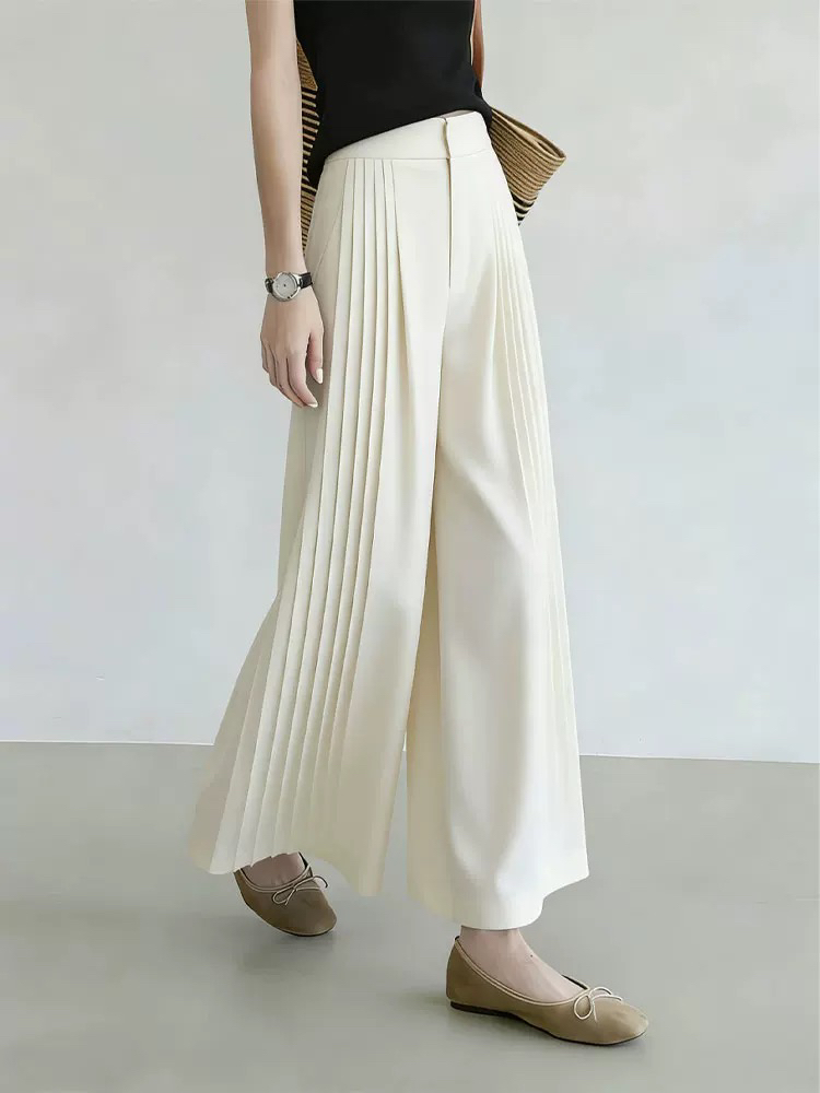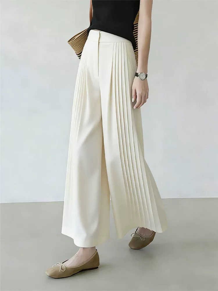 화이트 플리츠 디자인 센스 와이드 레깅스 바지 2026 여름 새로운 패션 출퇴근 다용도 트렌드 작은 대중 스트레이트 팬츠