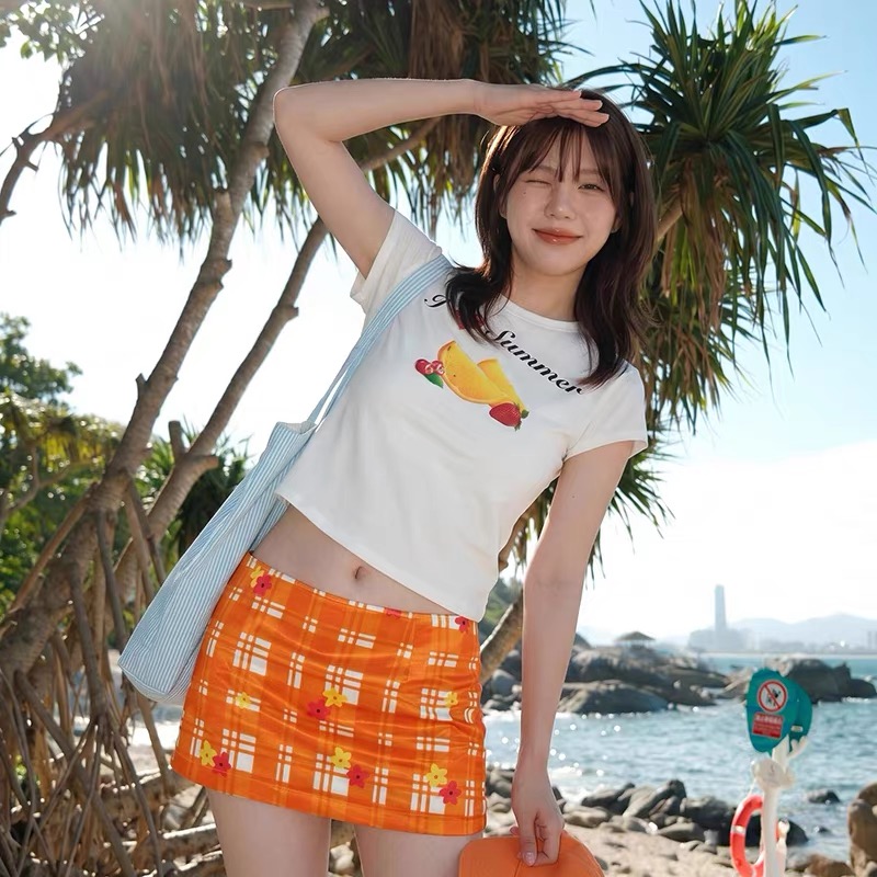 사람들 면 26 년 봄 새로운 조심해. 기계 허리 수축 반팔 티셔츠 여성 단색 맨위 페이크 레이어드 티셔츠