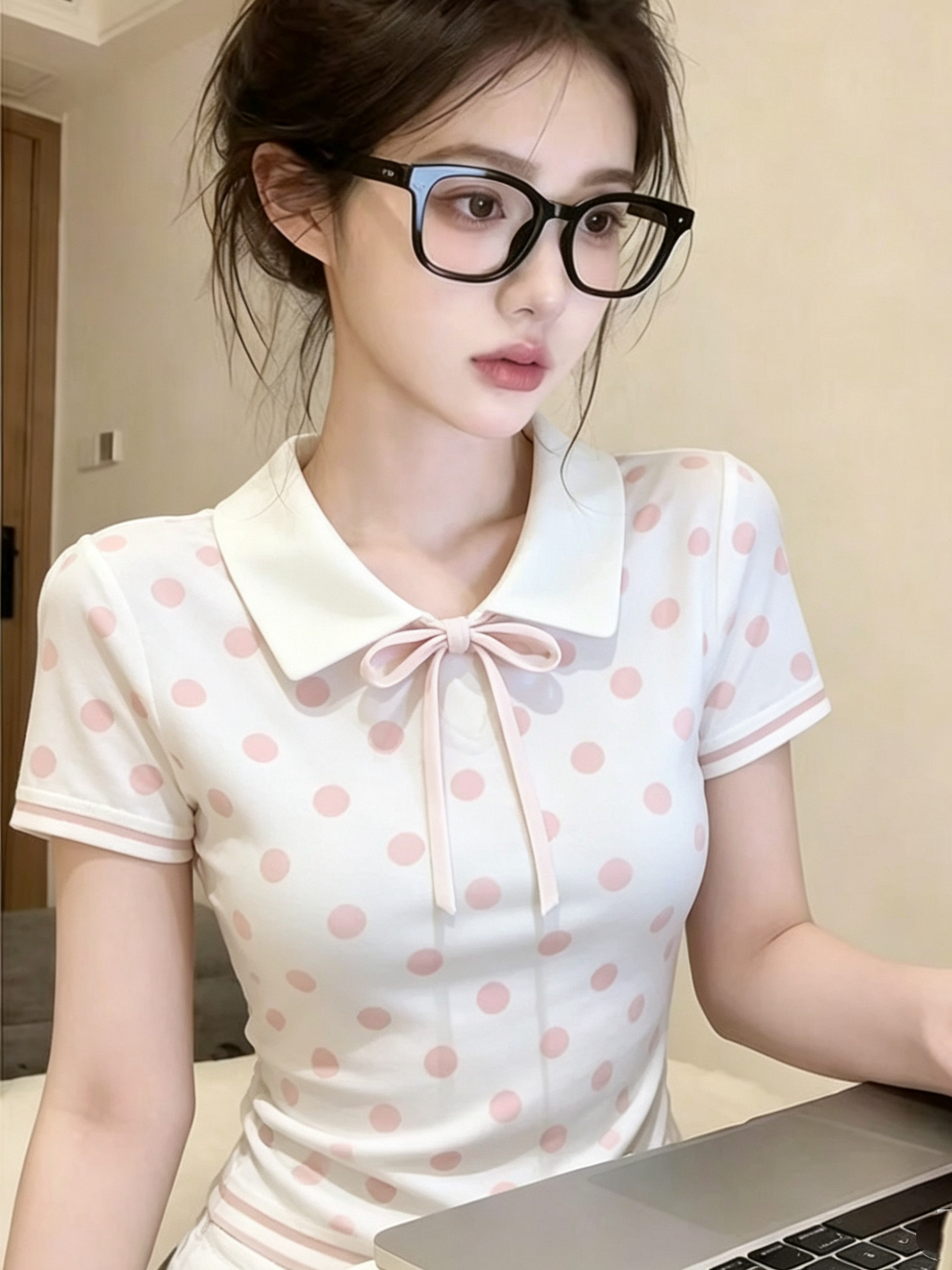 프랑스식 달콤함 도트 무늬 POLO 칼라 반팔 니트 스웨터 여성 여름 새로운 세련된 외국 가스 연령 감소 고급 센스 맨위