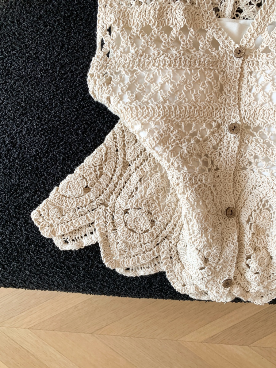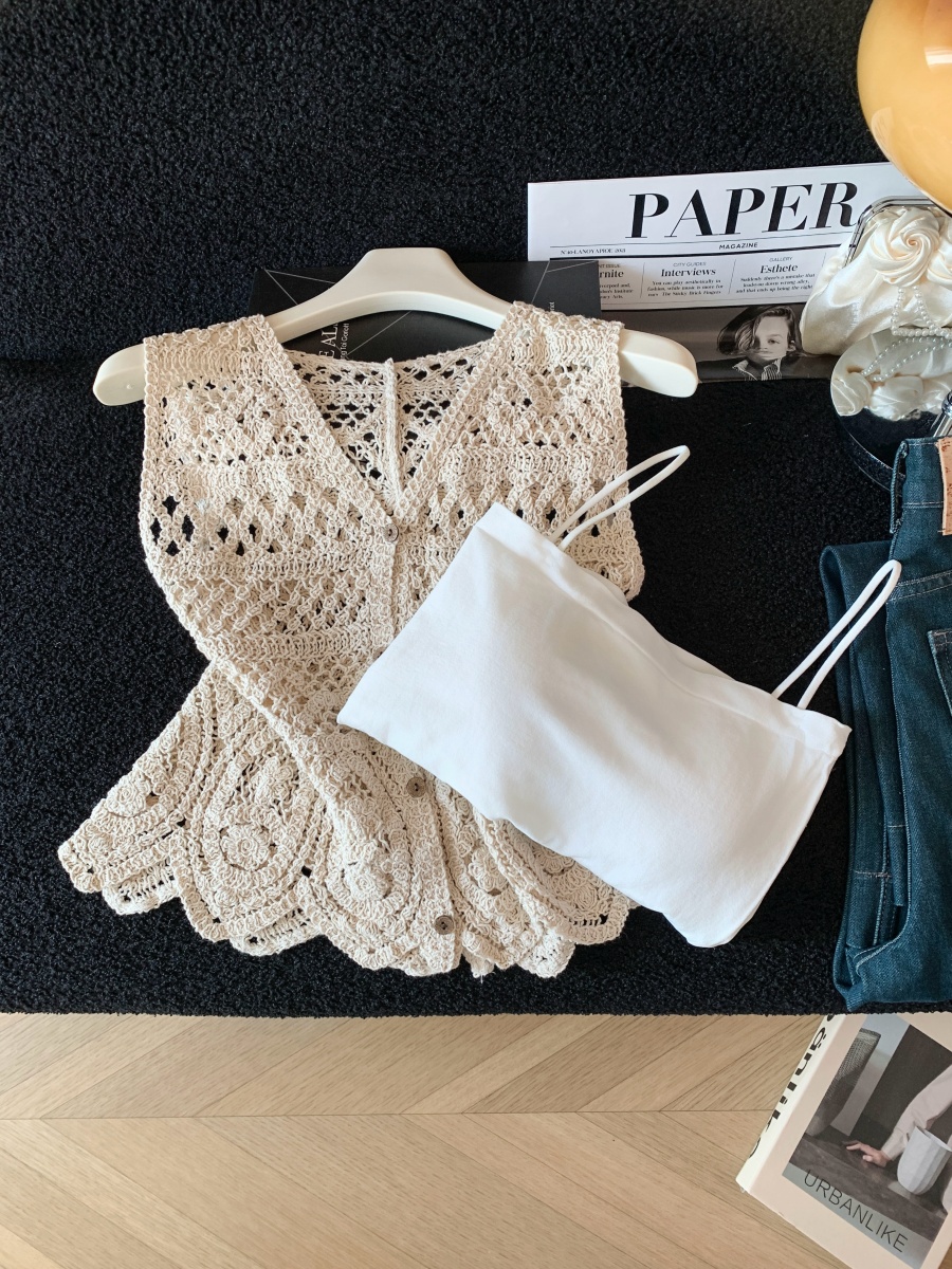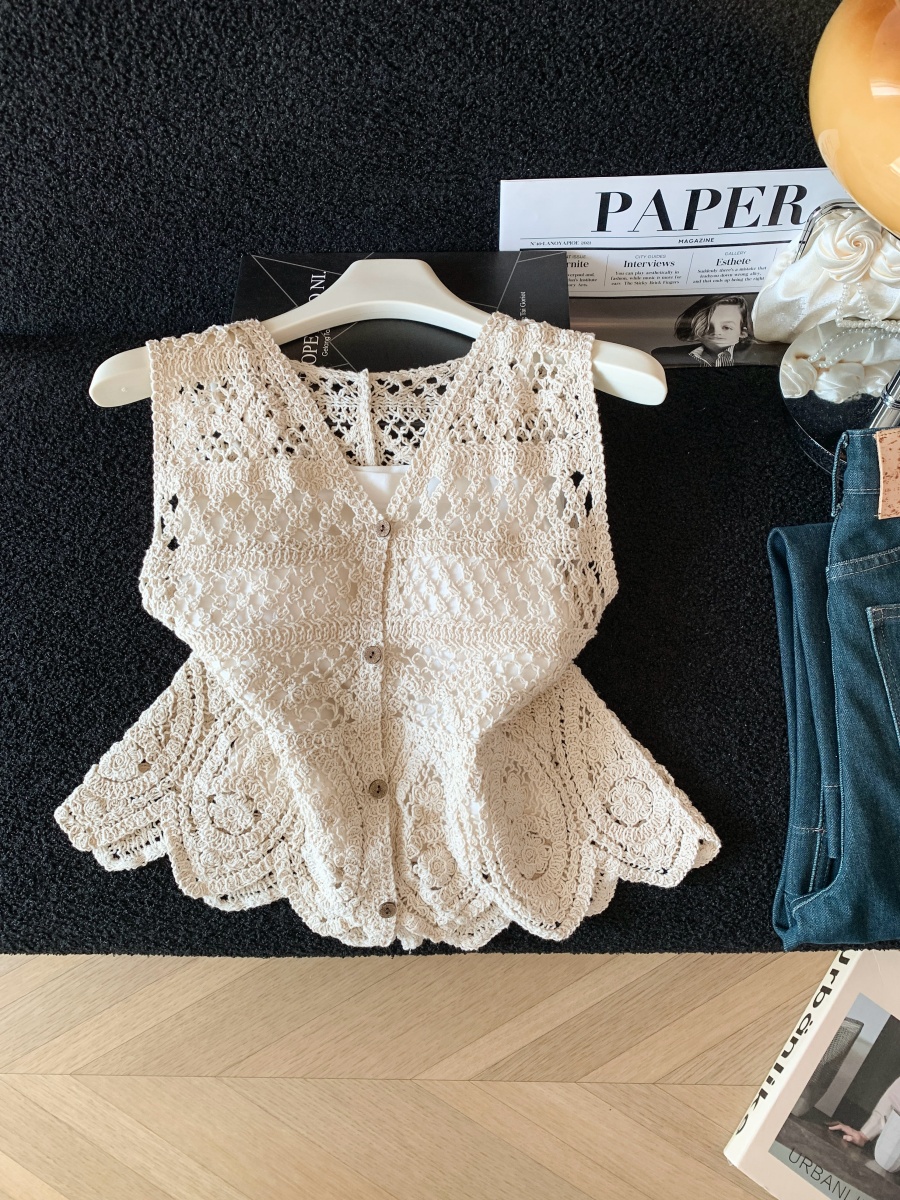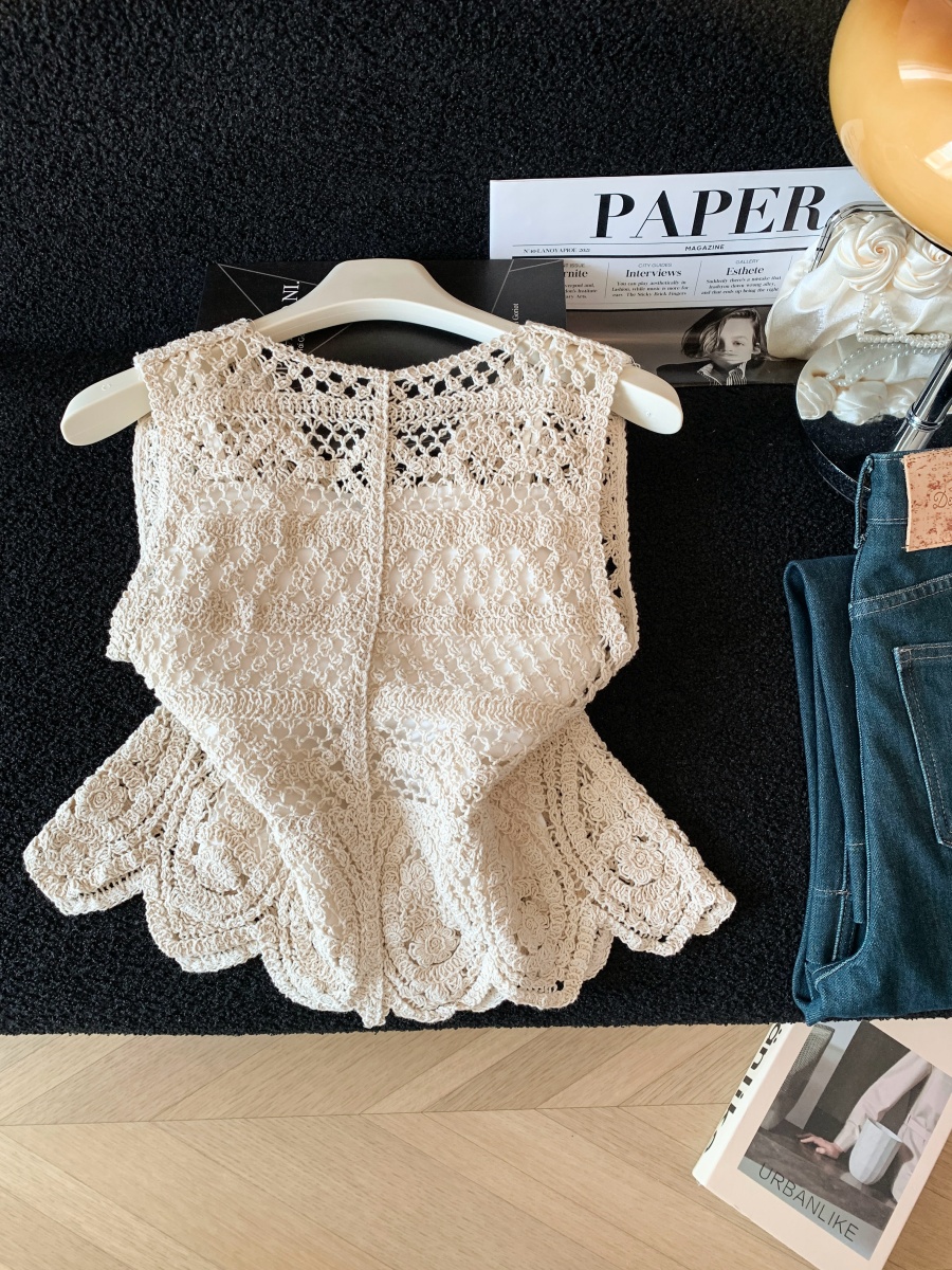실사 한 부서 chic Chic 여름 휴가 외출용 홀로우 아웃 니트 민소매 맨위 여성 새로운 외출용 레이스