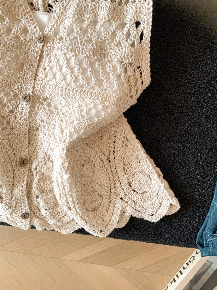 실사 한 부서 홀로우 아웃 어깨 니트 오픈 가디건 2026 여름 자이언트 잘 생긴 스택 착용 반팔 기본 셔츠 투피스 세트