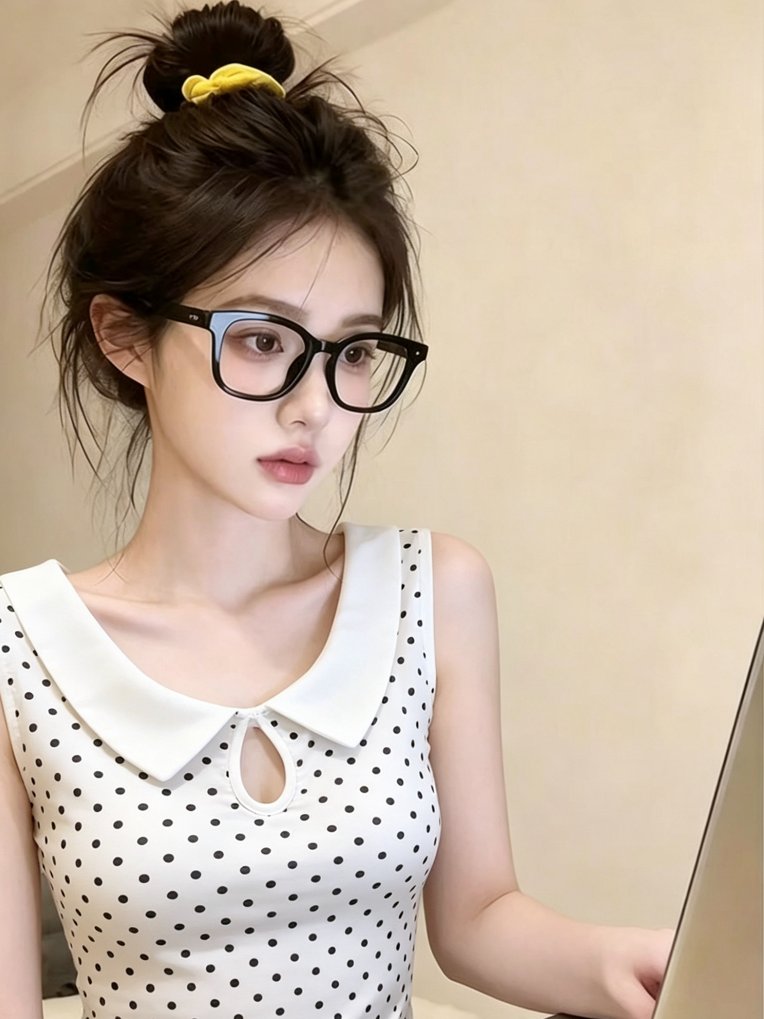 한 부서 POLO 칼라 홀로우 아웃 도트 무늬 민소매 조끼 여성 여름 새로운 세련된 달콤함 몸매 가꾸기 다용도 연령 감소 맨위