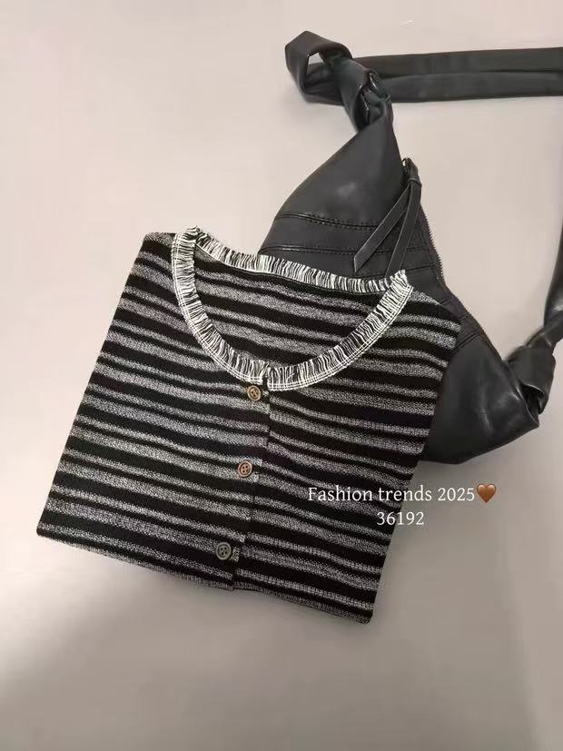 한 부서 chic 부드러운 느긋한 바람 니트 반팔 티셔츠 여성 여름 2025 새로운 품격 허리 수축 고급 센스 맨위