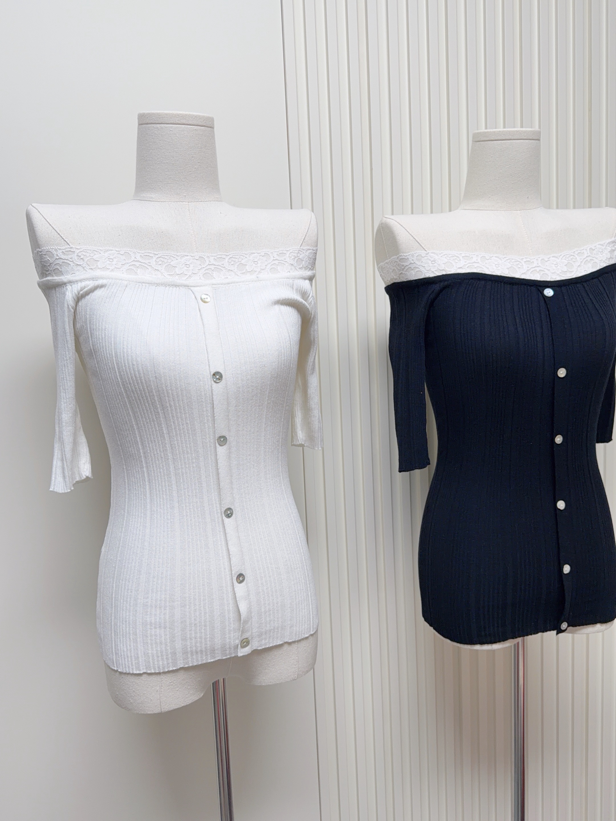 sheepland 아름다움 골 레이스 조각 오프숄더 니트 반팔 여성 봄 여름 얇은 스타일 슬림해 보이는 맨위