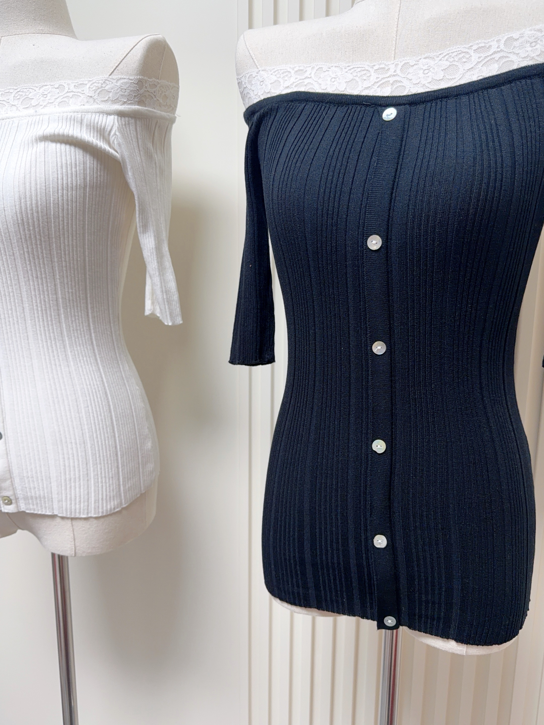 f projectsummer break 보트넥 비스듬한 어깨 몸매 가꾸기 슬림해 보이는 품격 오프숄더 니트 맨위