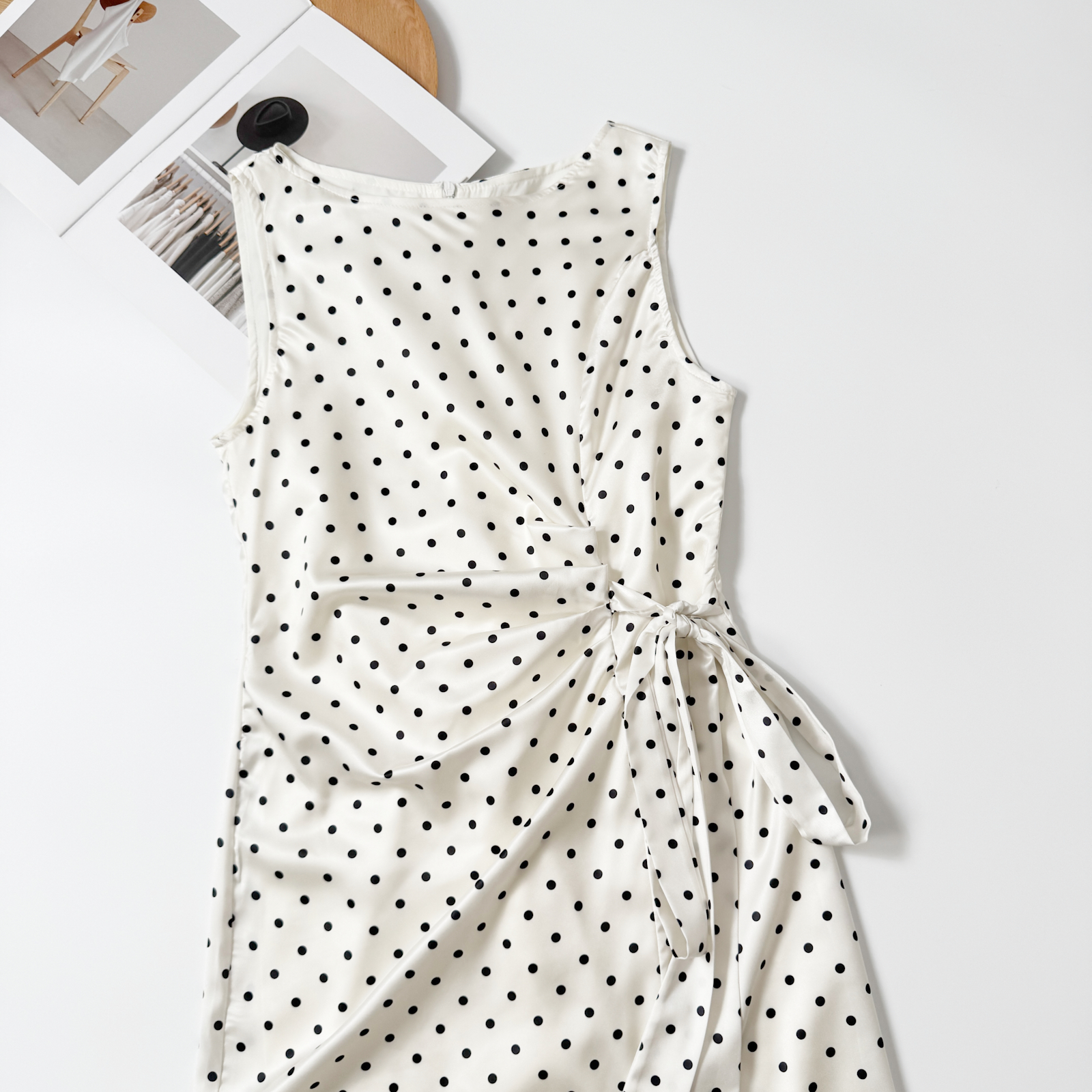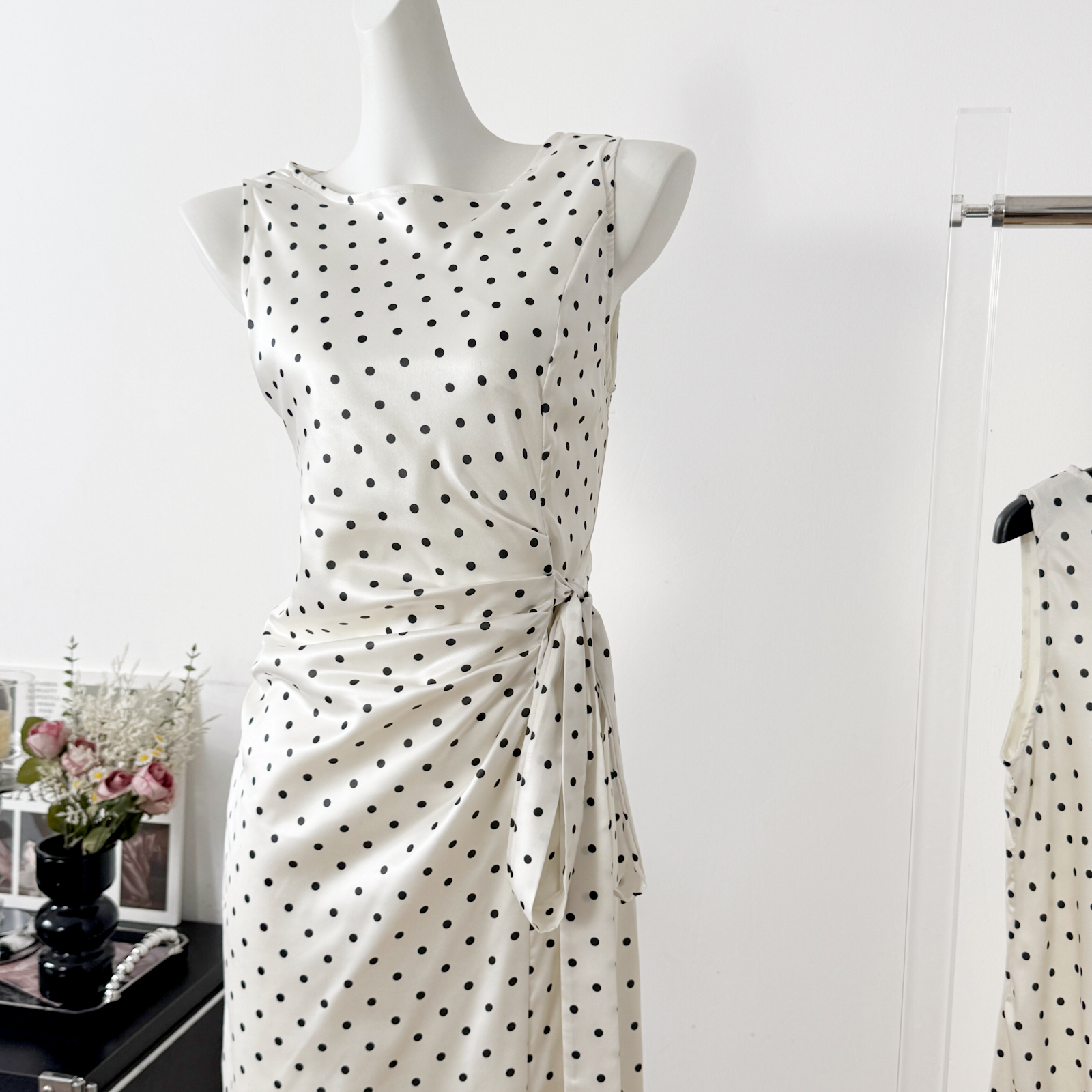 icelolly 아마 민소매 허리 수축 도트 무늬 조끼 여성 드레스 2026 봄 여름 특별 아름다운 꼬집기 허리 치마