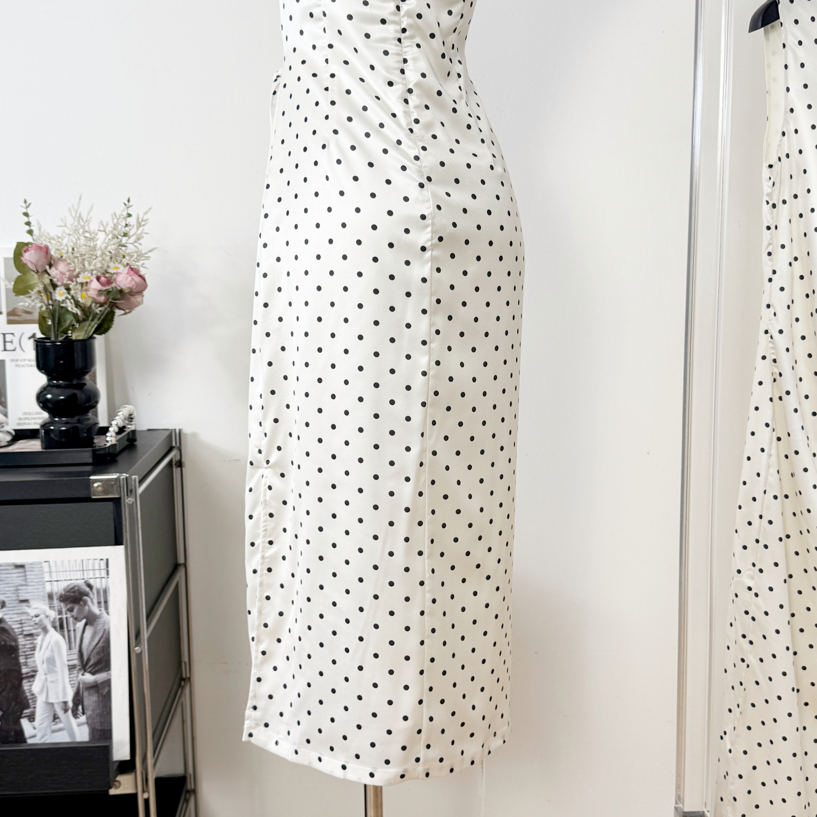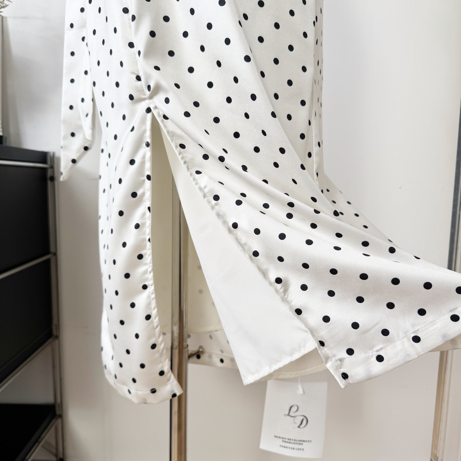 도트 무늬 대 치마 펌프 로프 허리밴드 도트 무늬 반신 스커트 하이웨이스트 한 마디 슬림해 보이는 롱 스커트 투피스 세트 세트