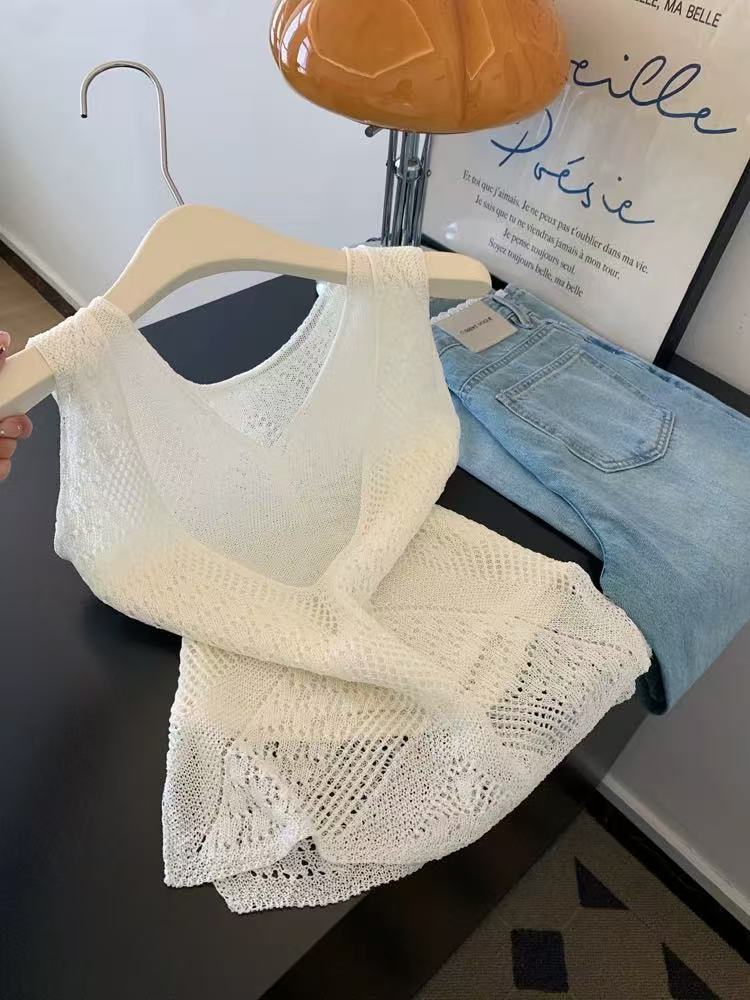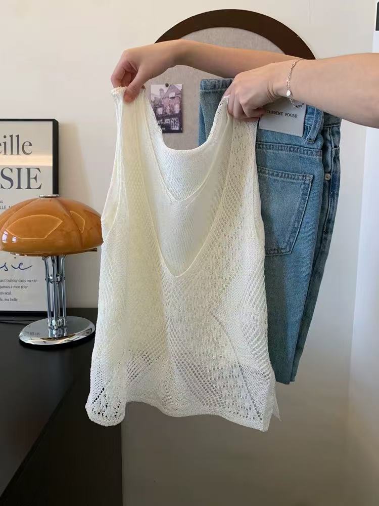 화이트 홀로우 아웃 마이크로 ~을 통해 V넥 슬립 스택 착용 조끼 여성 인사이드 가져 가라. 수 있습니다. 외출용 핫걸 민소매 맨위 2026 여름