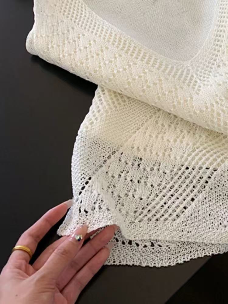 실사 작은 대중 홀로우 아웃 자수 니트 반팔 다용도 맨위 여성 여름 새로운 chic