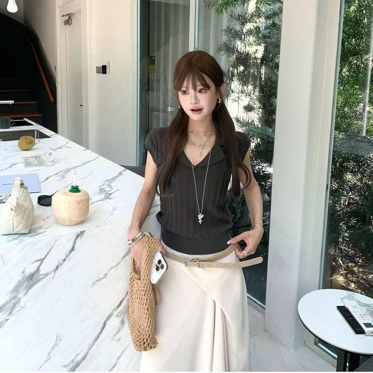 26 봄 여름 새로운 sd 프랑스식 패션 징 세팅 프릴 니트 조끼 맨위 하이웨이스트 한 마디 반신 스커트
