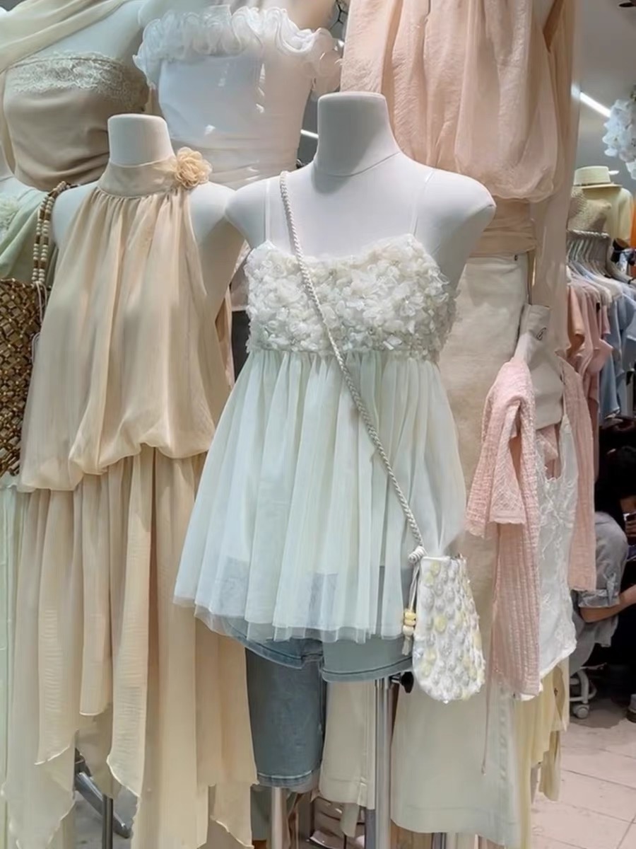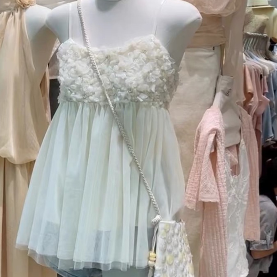 열세 개 여성 의류 여름 한 부서 순수한 욕망 분위기 센스 꽃 망사 퍼프 슬립 작은 셔츠 조끼 민소매 맨위