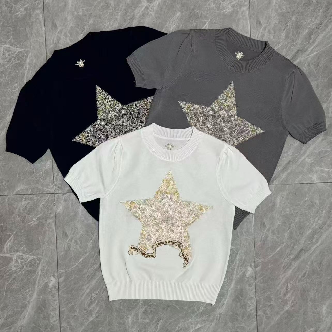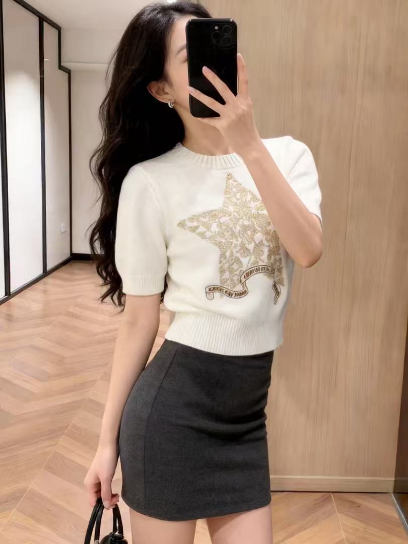 프랑스식 레트로 홀로우 아웃 반팔 니트 스웨터 여성 2026 년 여름 새로운 색상 작은 벌 자수 연령 감소 맨위