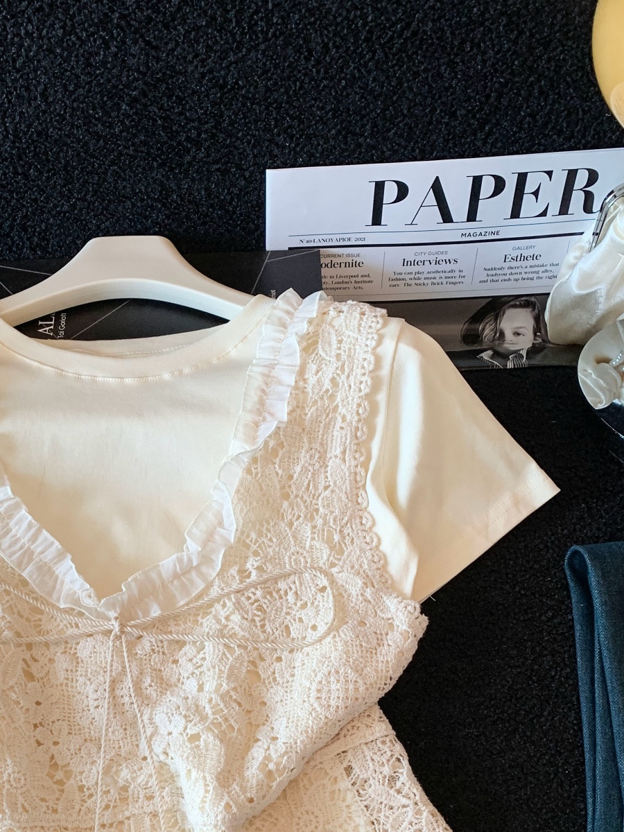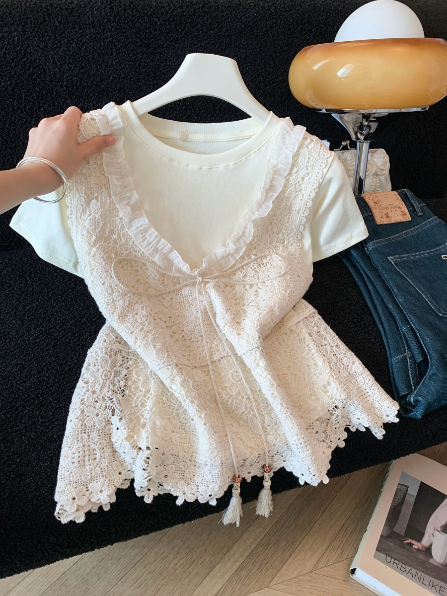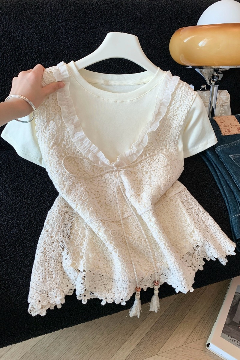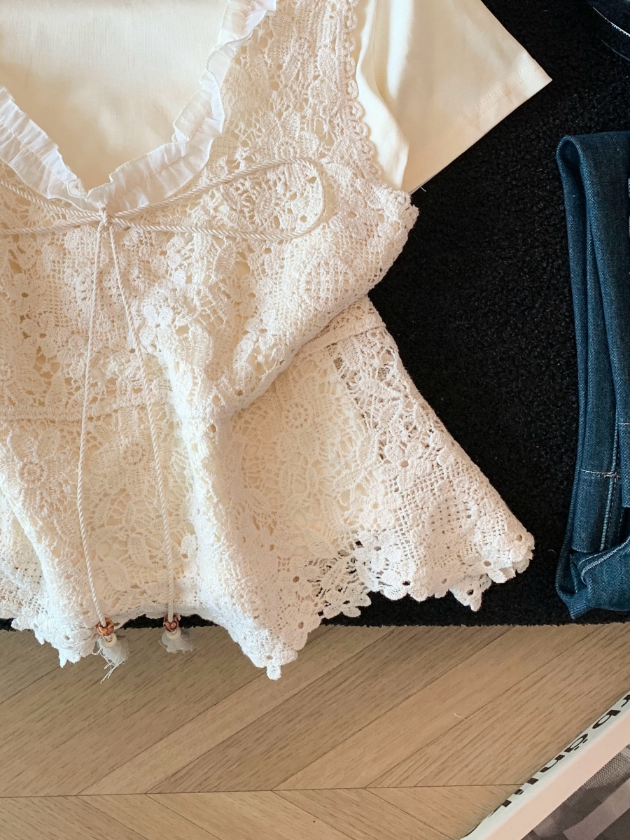 실사 한 부서 chic Chic 여름 휴가 외출용 홀로우 아웃 니트 민소매 맨위 여성 새로운 외출용 레이스