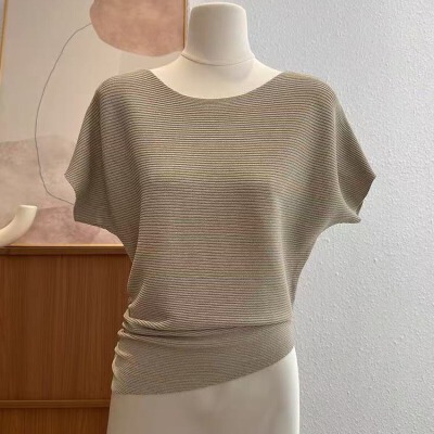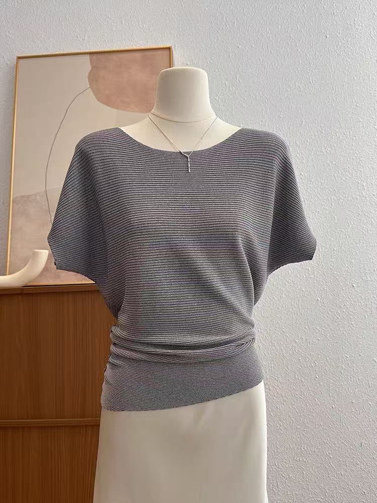 2026 봄 새로운 한 부서 루즈핏 라운드 넥 슬림해 보이는 라이 경기 서울 주간 실크 니트 반팔 티셔츠 여성 다용도 맨위