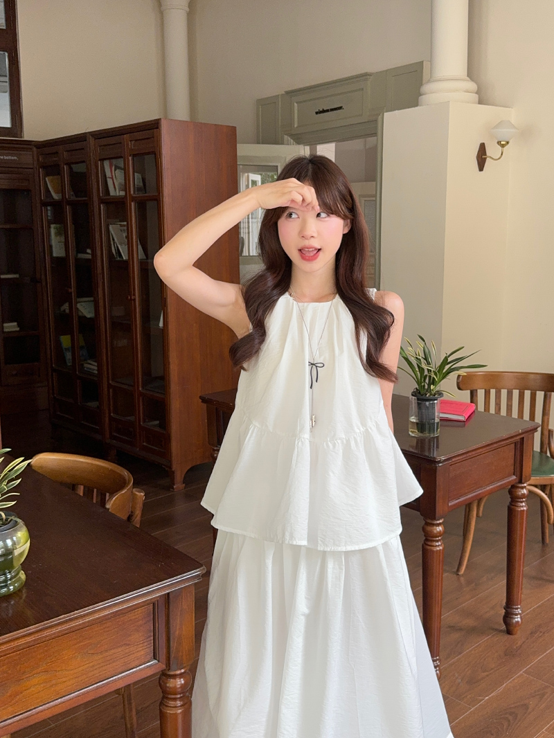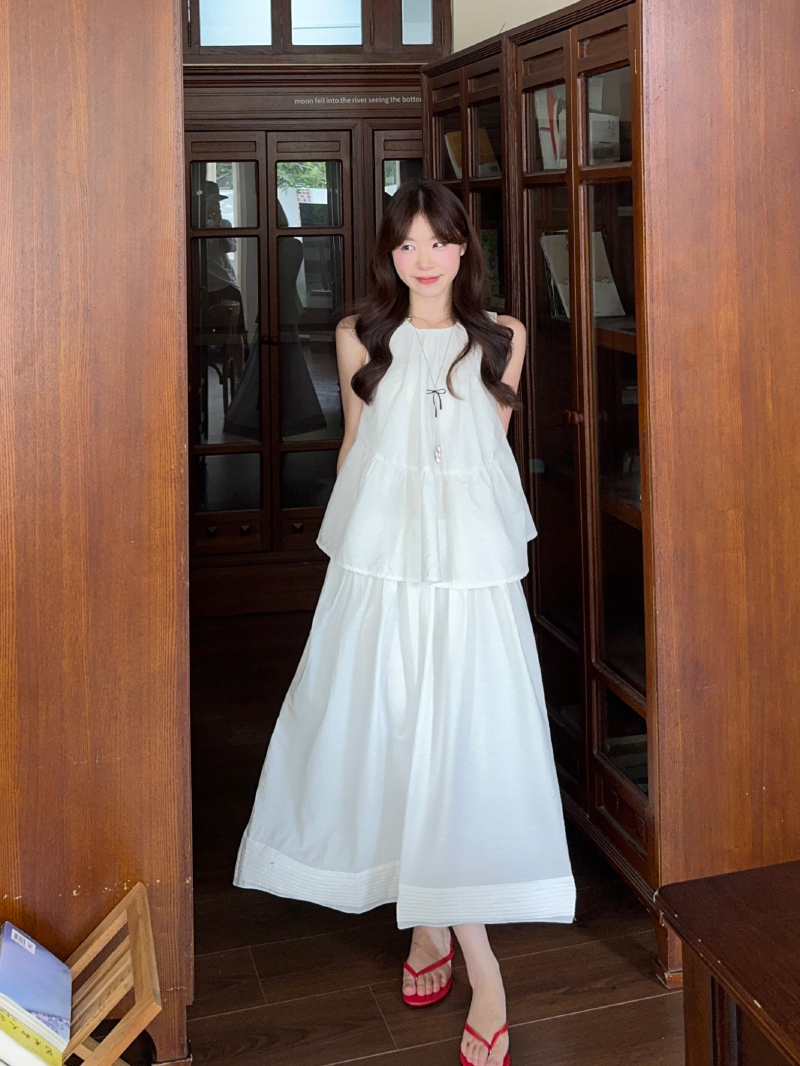 재고 있음 한국 동대문 26 여름 낮은 네크라인 페이크 레이어드 무릎 아래 슬립 드레스
