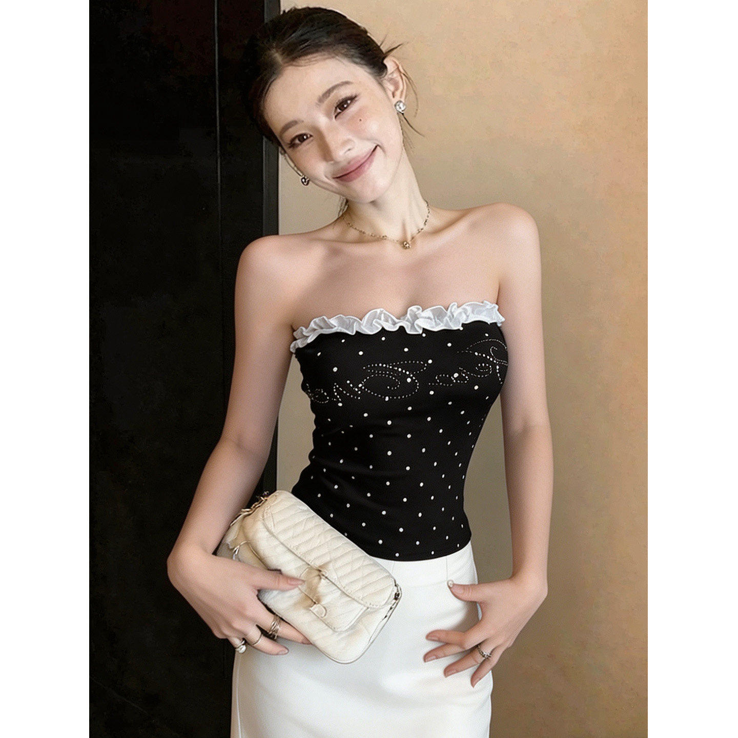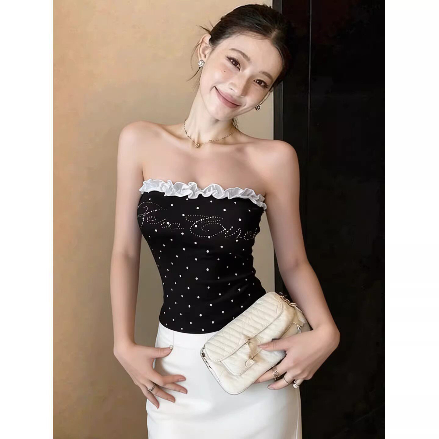 디자인 센스 레이스 패치워크 도트 무늬 튜브탑 조끼 여성 여름 외출용 벨트 가슴 패드 몸매 가꾸기 핫걸 무거운 작업 핫픽스 맨위