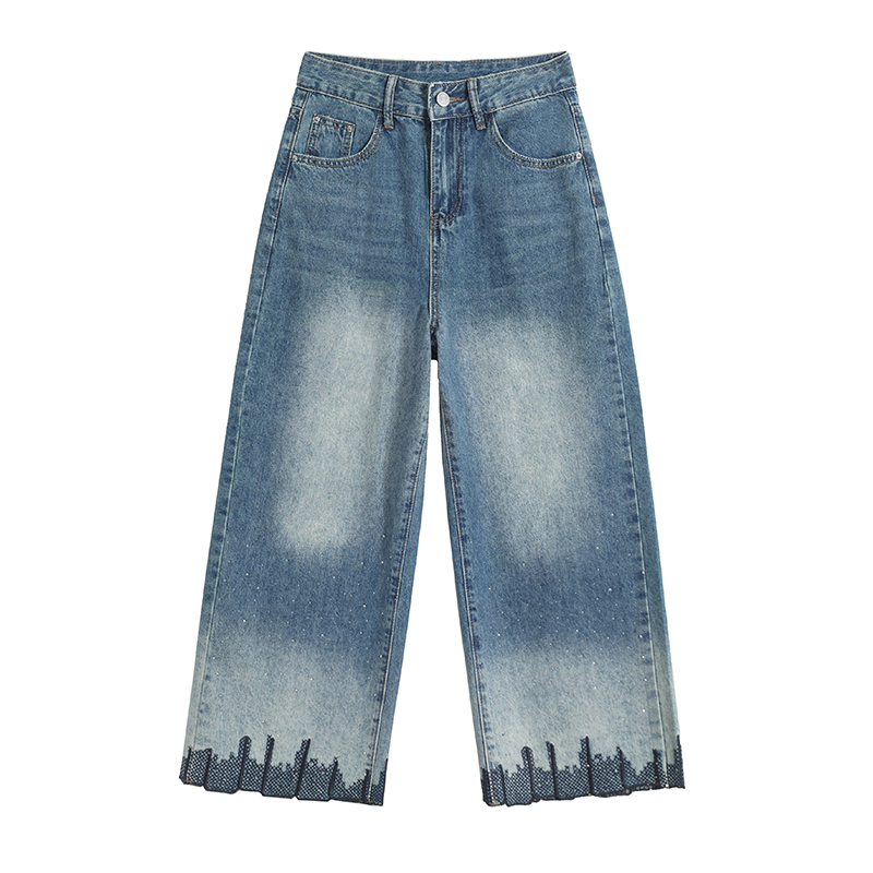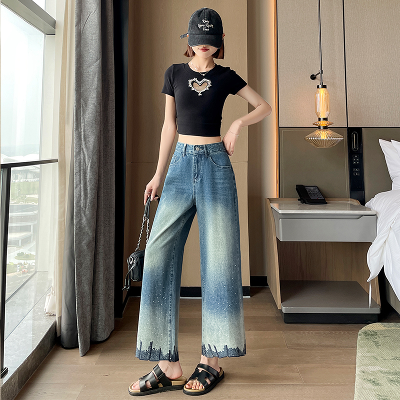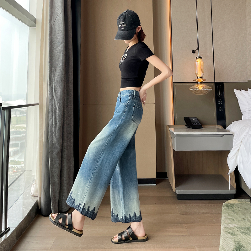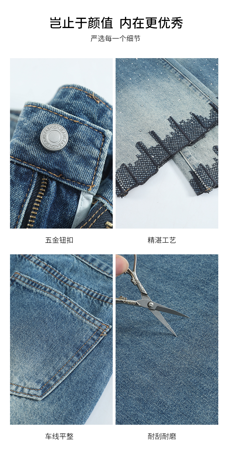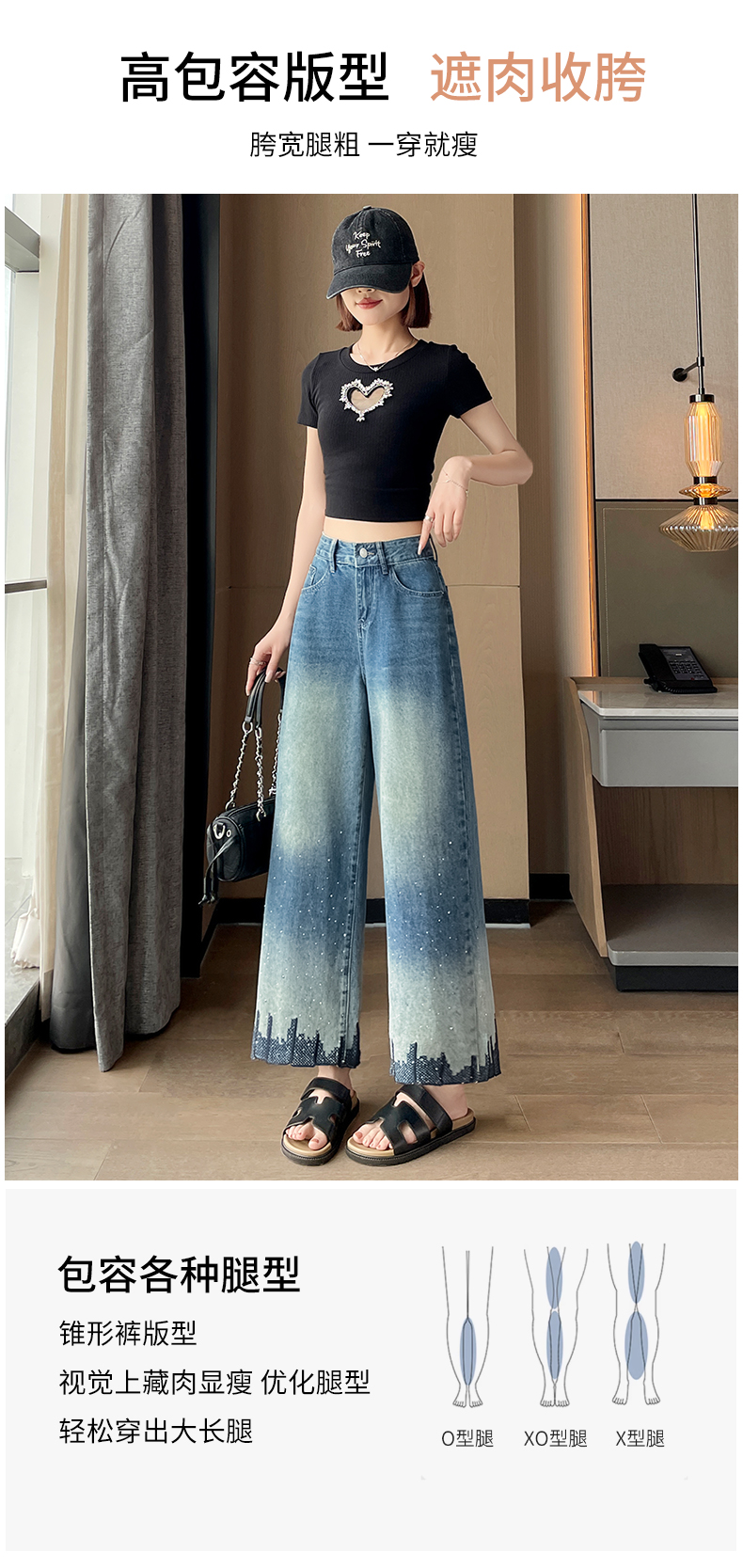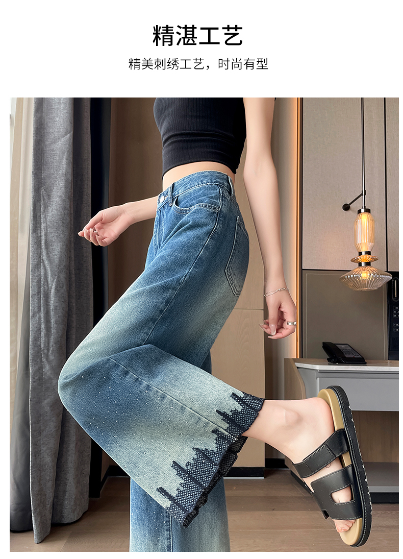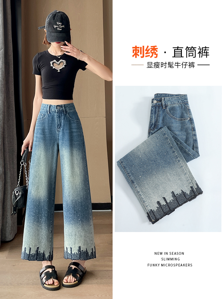 실사 홀로우 아웃 자수 청바지 여성 2026 여름 개성 조수 브랜드 작은 키 9 포인트 핫픽스 스트레이트 와이드 레그 팬츠