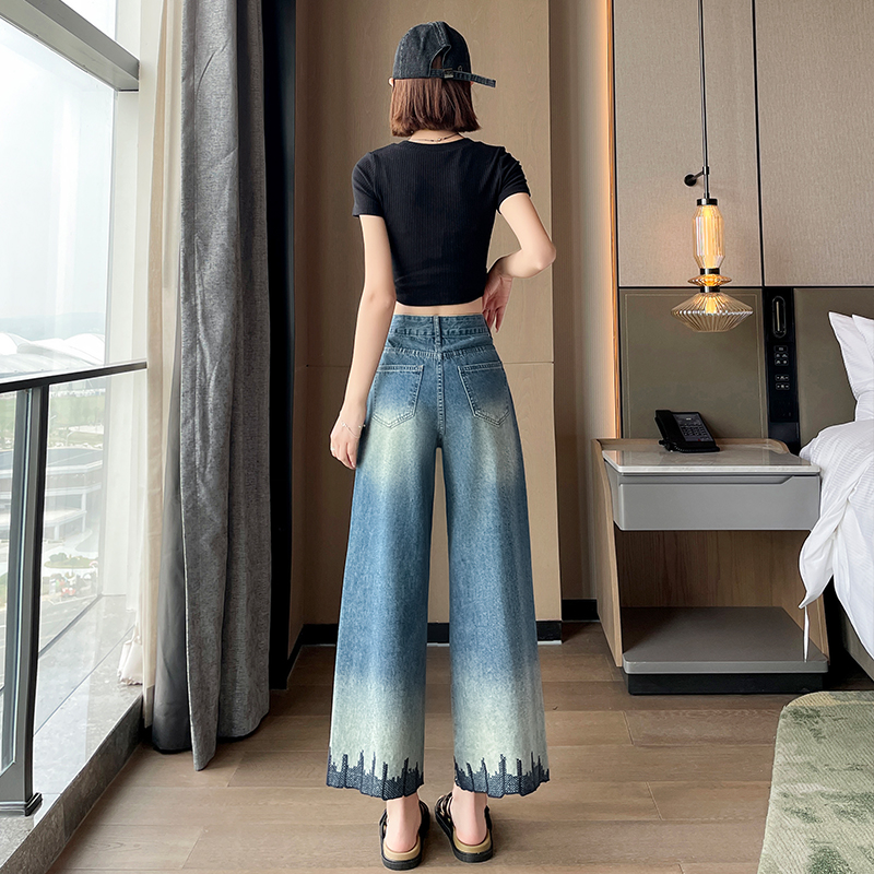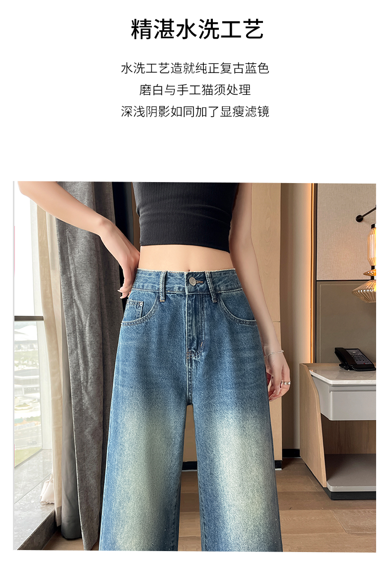 실사 작은 키 자수 넓은 다리 청바지 여성 여름 2026 새로운 레트로 하이웨이스트 슬림해 보이는 스트레이트 8 점 바지