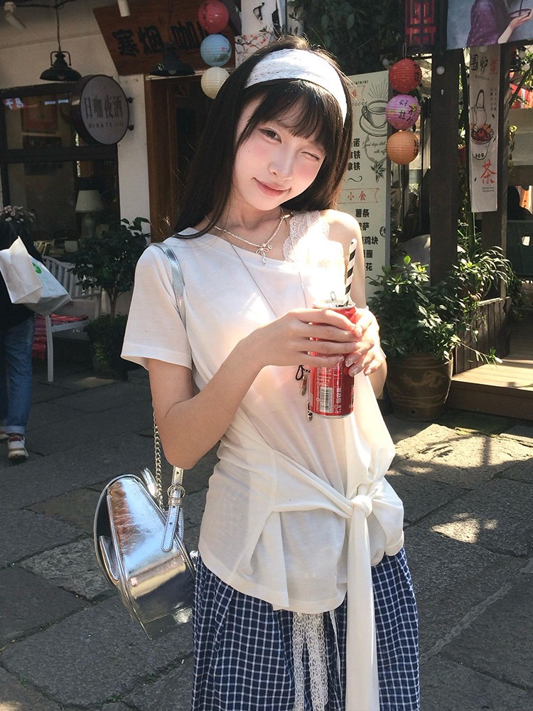 하트 비트 바 리 90g 아세트산 순수한 욕망 핫걸 스택 착용 페이크 레이어드 레이스 캐미솔 여름