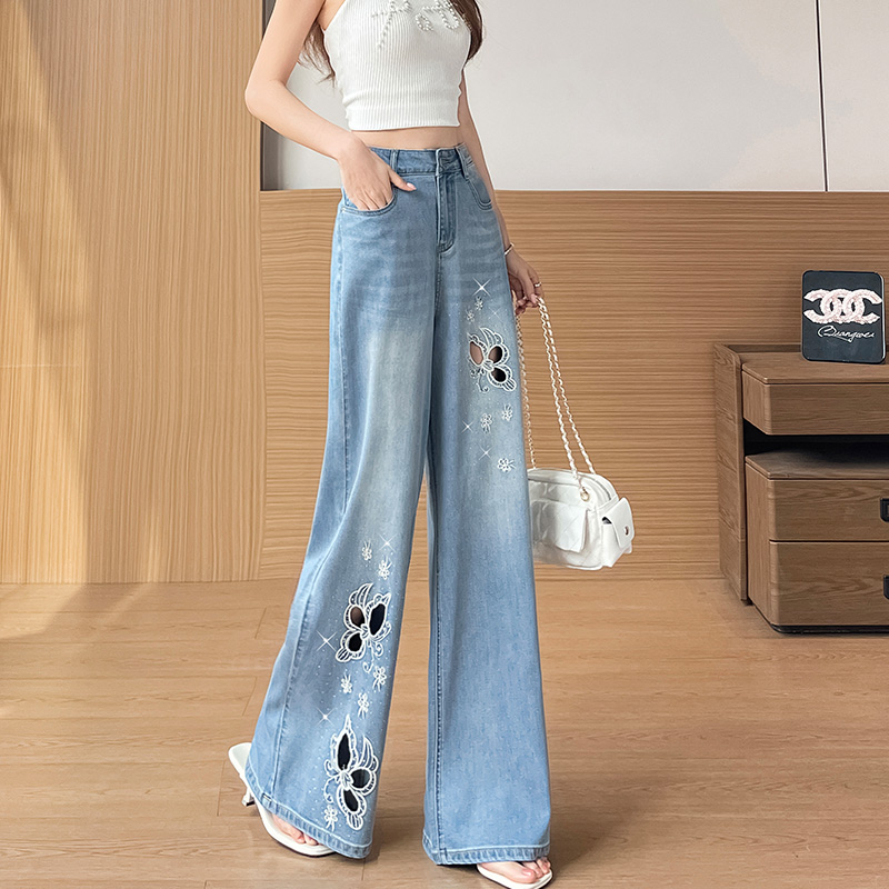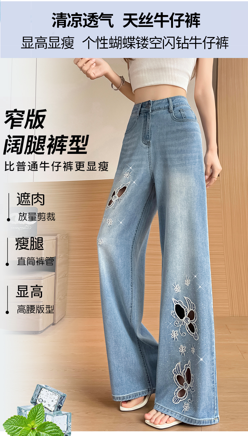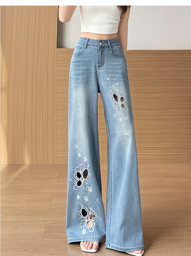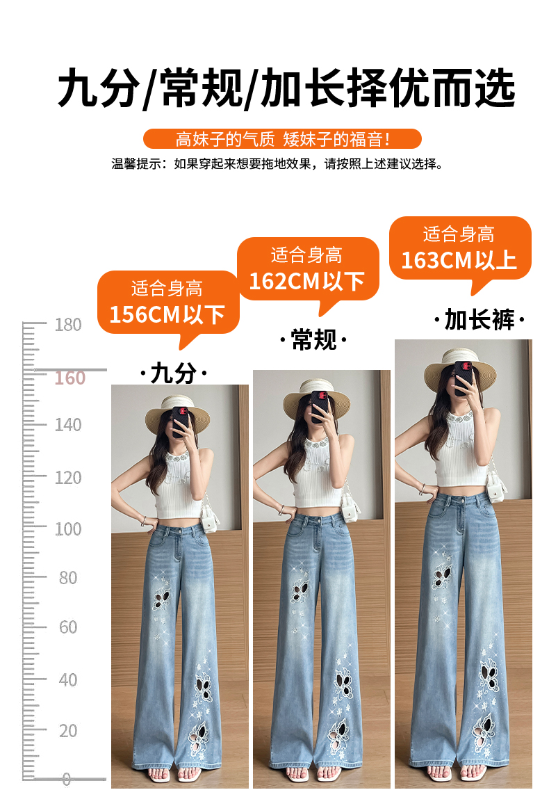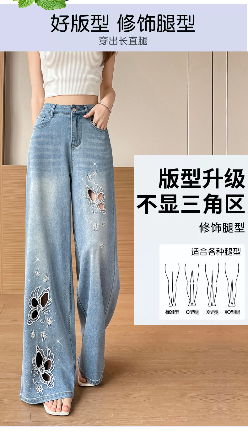 실사 홀로우 아웃 자수 청바지 여성 2026 여름 개성 조수 브랜드 작은 키 9 포인트 핫픽스 스트레이트 와이드 레그 팬츠