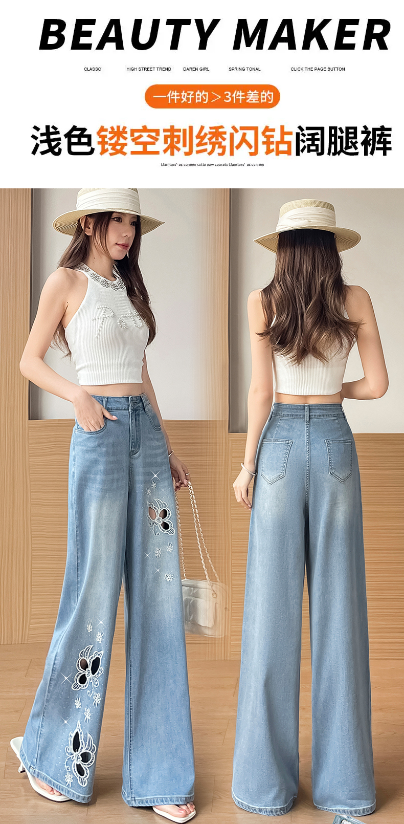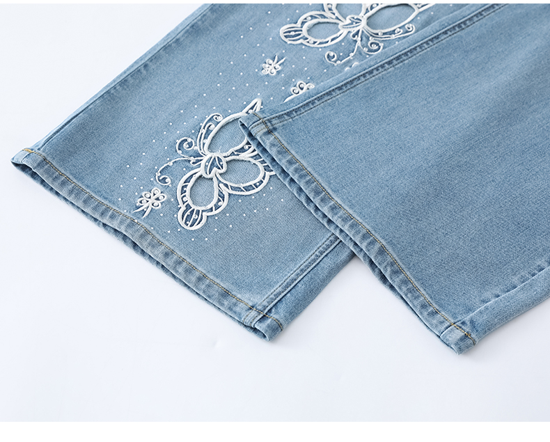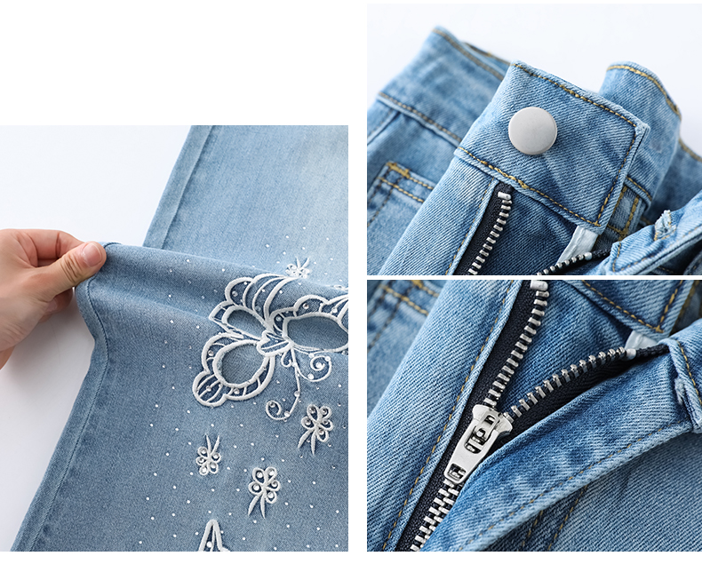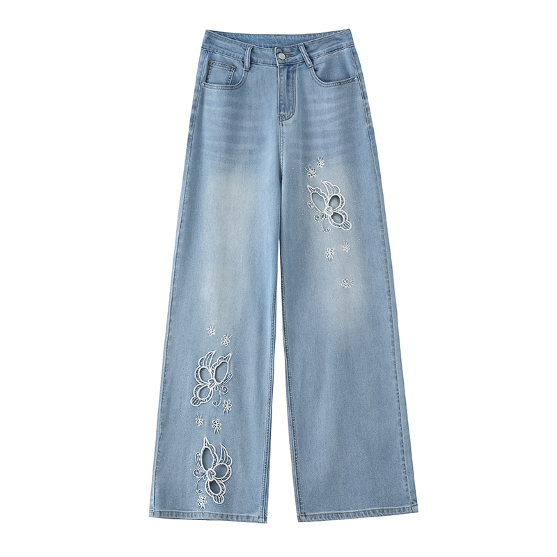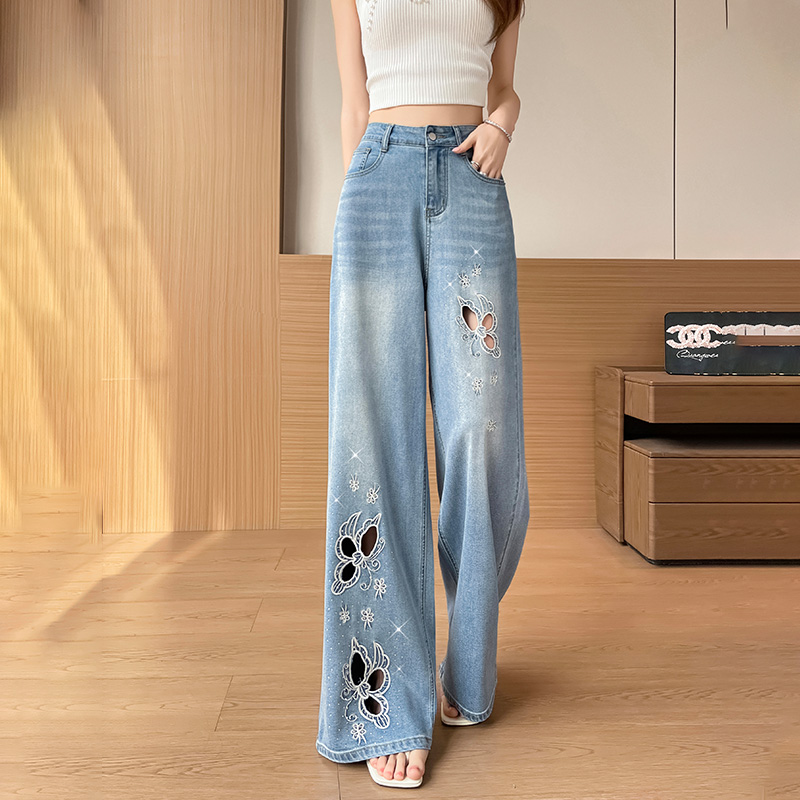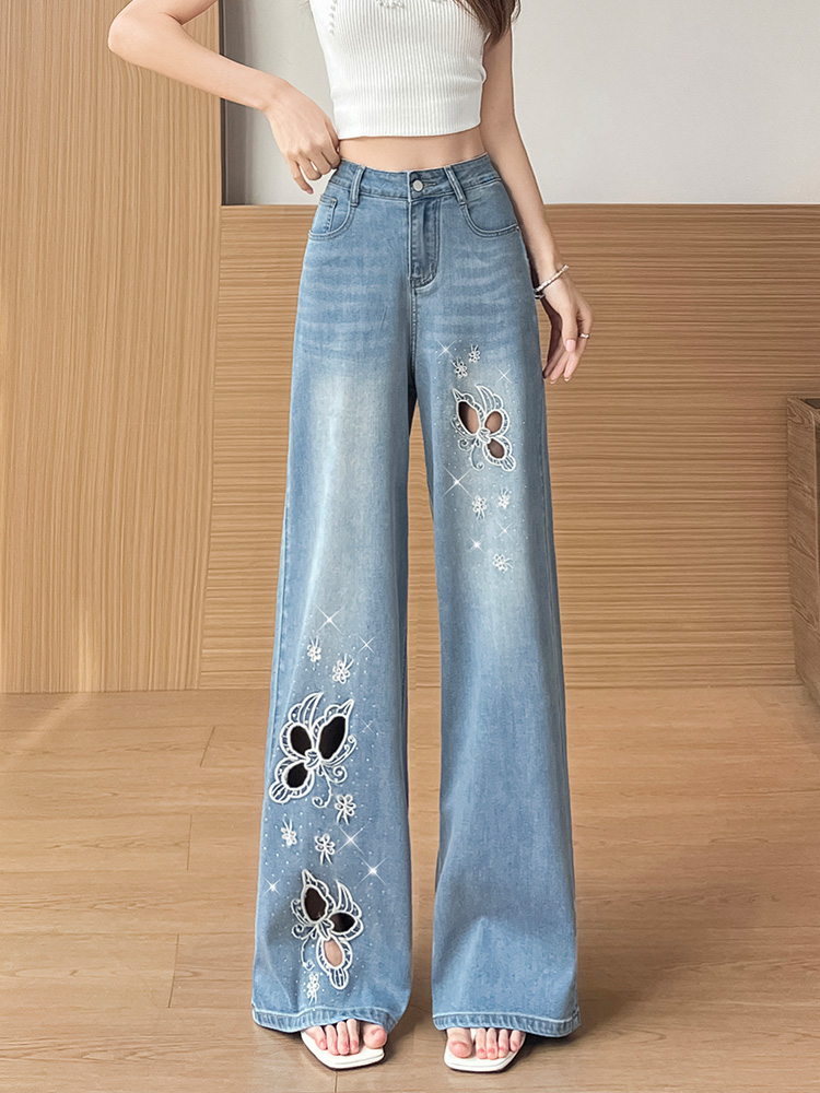 실사 홀로우 아웃 자수 청바지 여성 2026 여름 개성 조수 브랜드 작은 키 9 포인트 핫픽스 스트레이트 와이드 레그 팬츠
