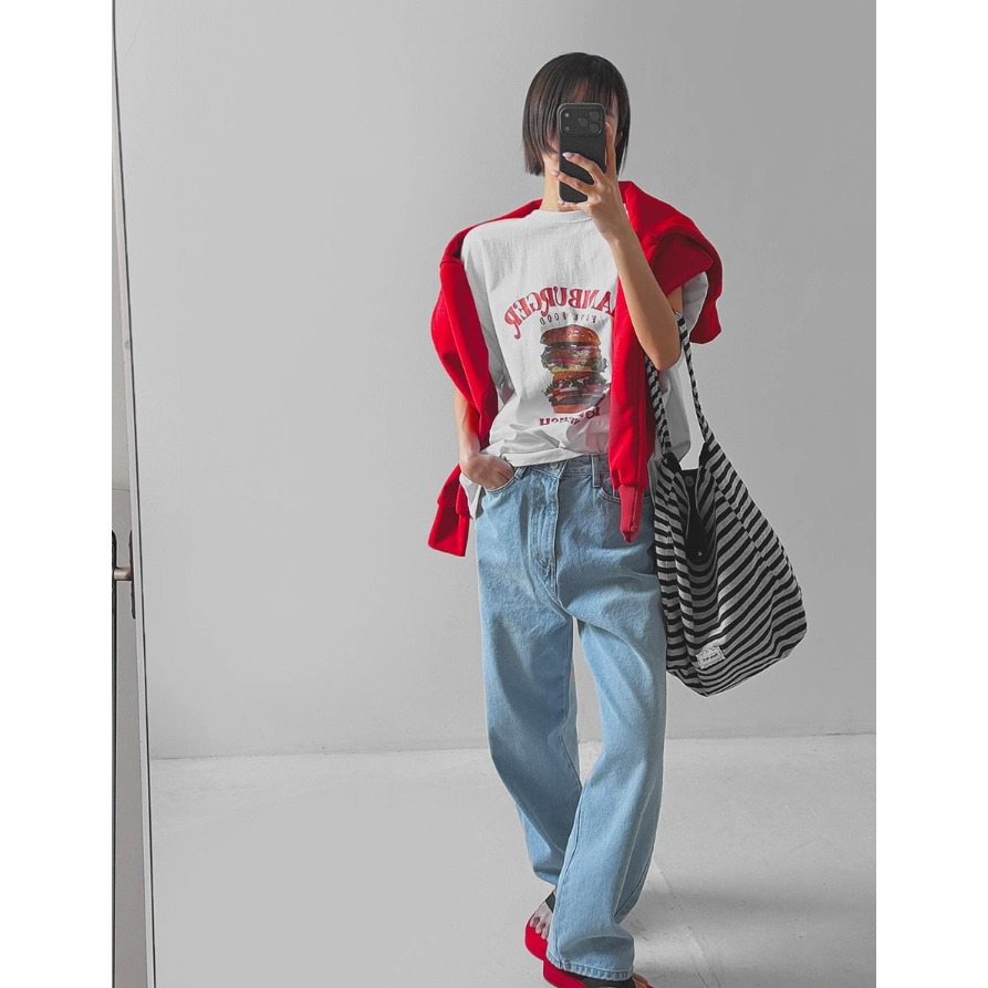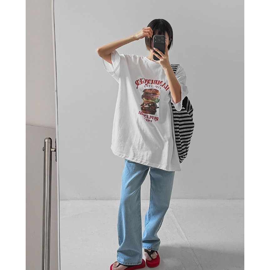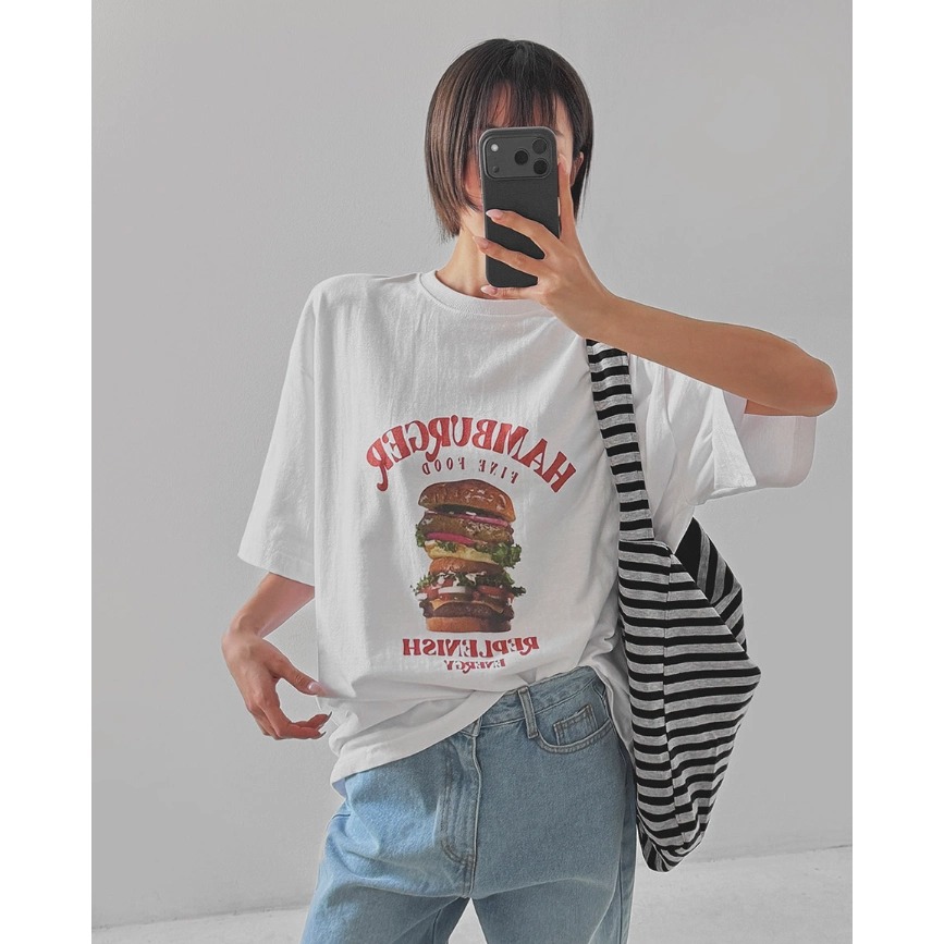 경관 그림 21 순면 210 그램 여름 드레스 한 부서 반팔 티셔츠 여성 한국 스타일 루즈핏 빅 사이즈 프린트