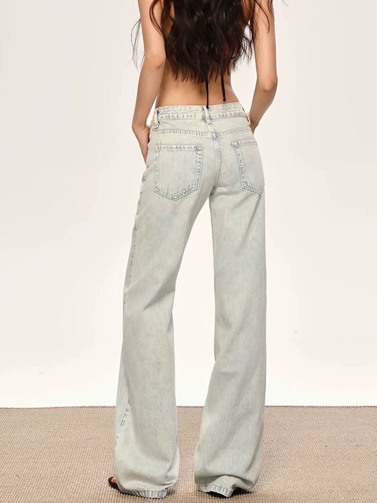 워싱 얕은 얼음 블루 로우 웨이스트 부츠컷 청바지 여성 여름 새로운 루즈핏 슬림해 보이는 캐주얼 바닥 청소 바지
