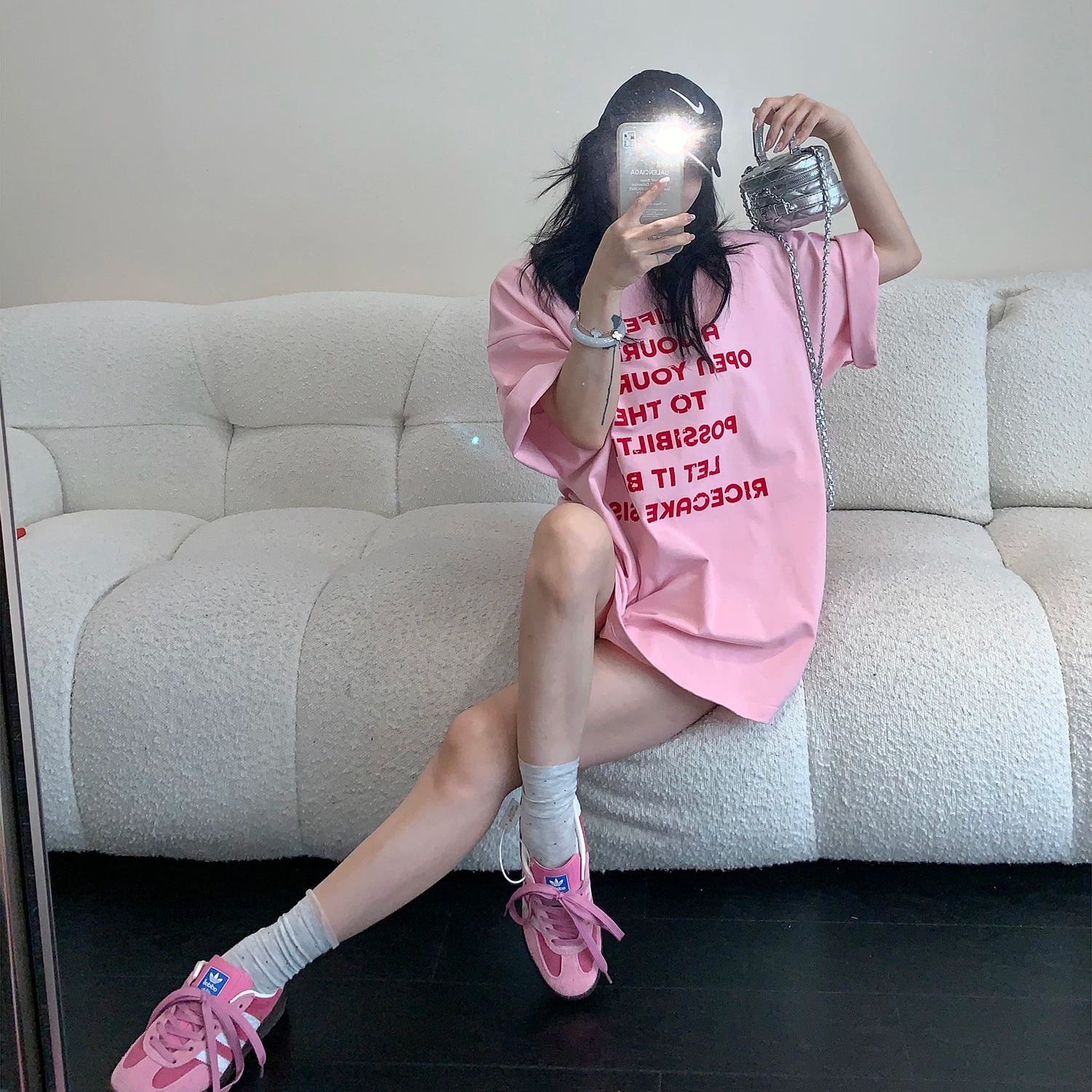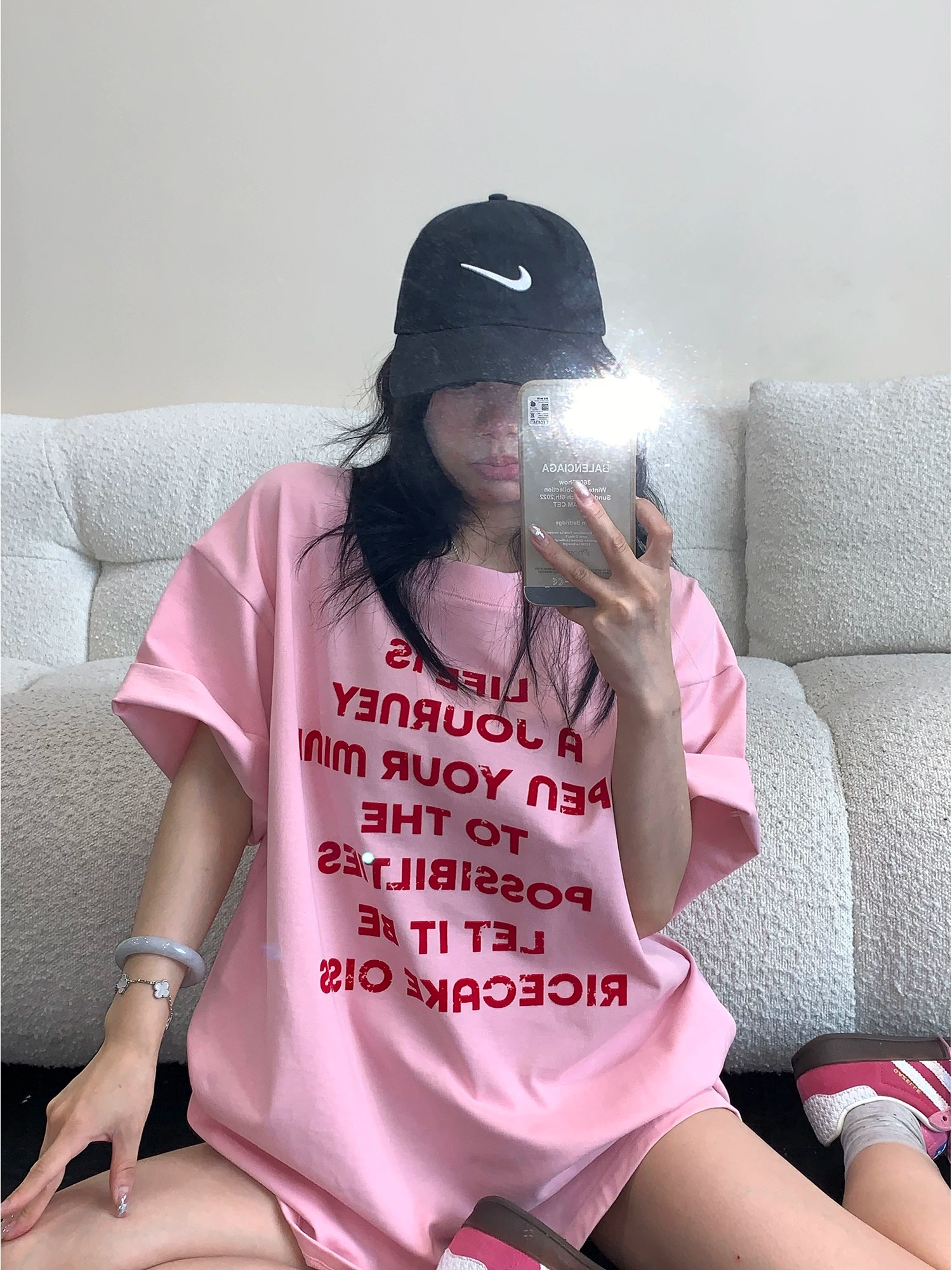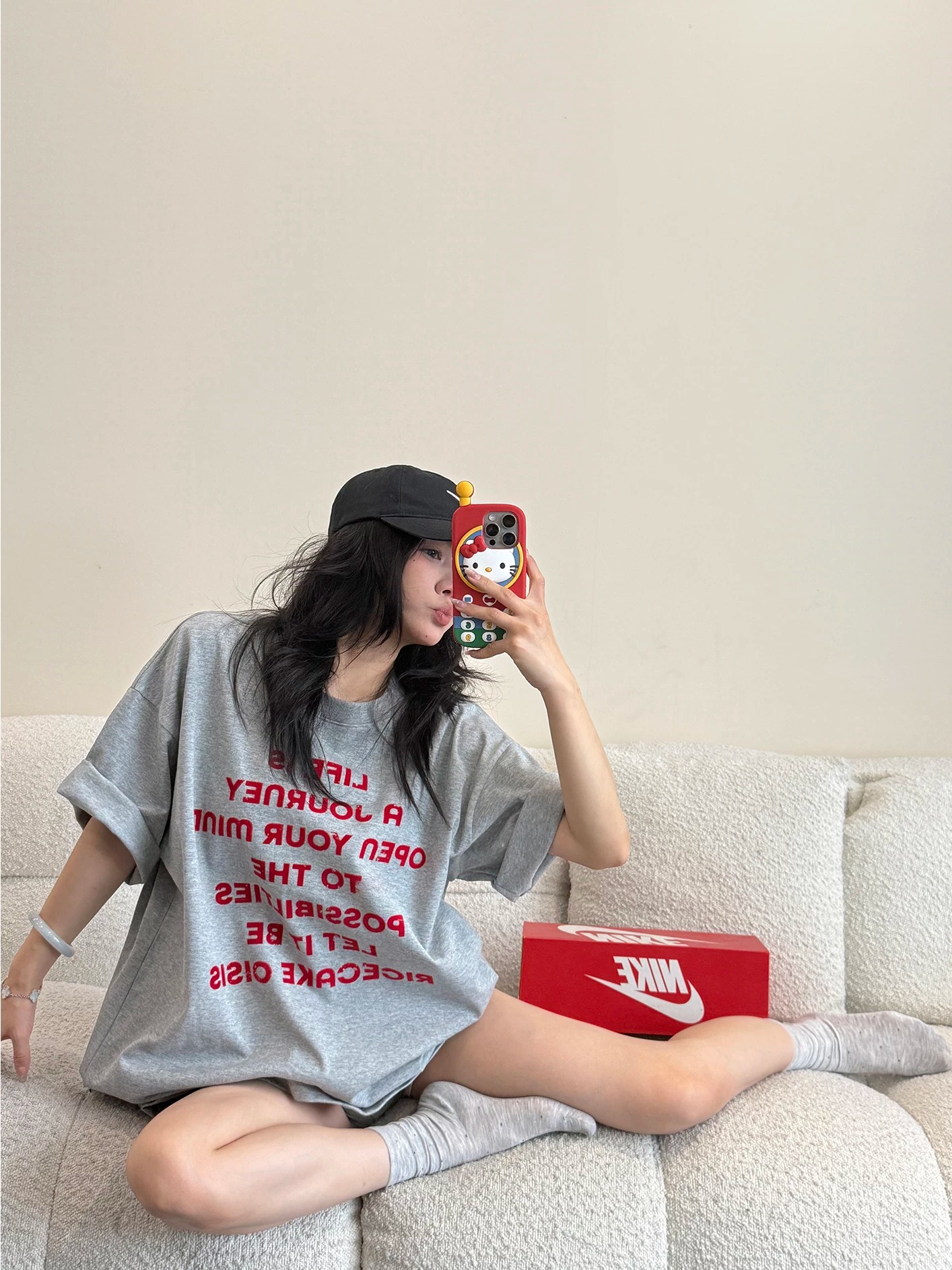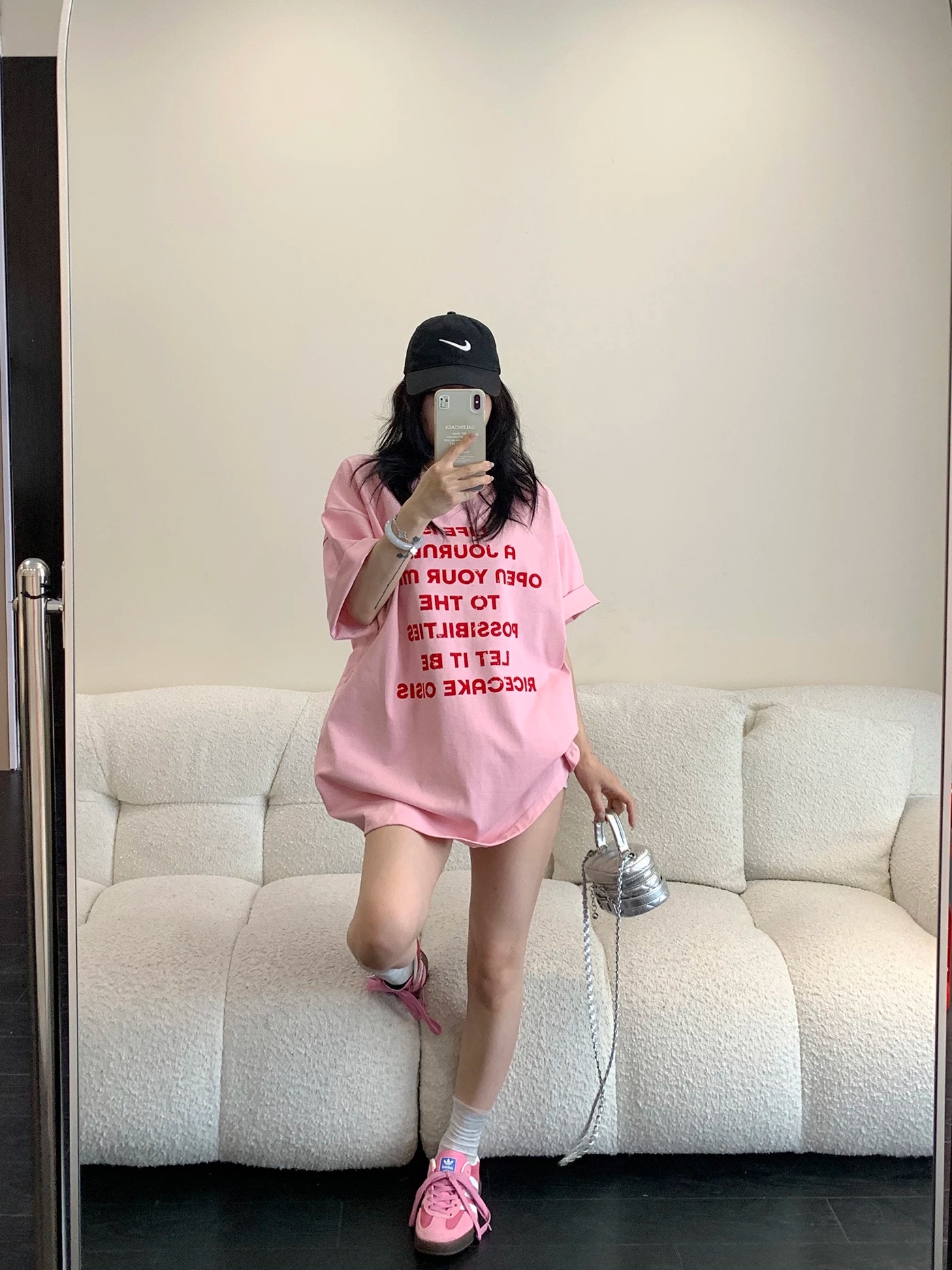 경관 그림 21 순면 210 그램 여름 드레스 한 부서 반팔 티셔츠 여성 한국 스타일 루즈핏 빅 사이즈 프린트