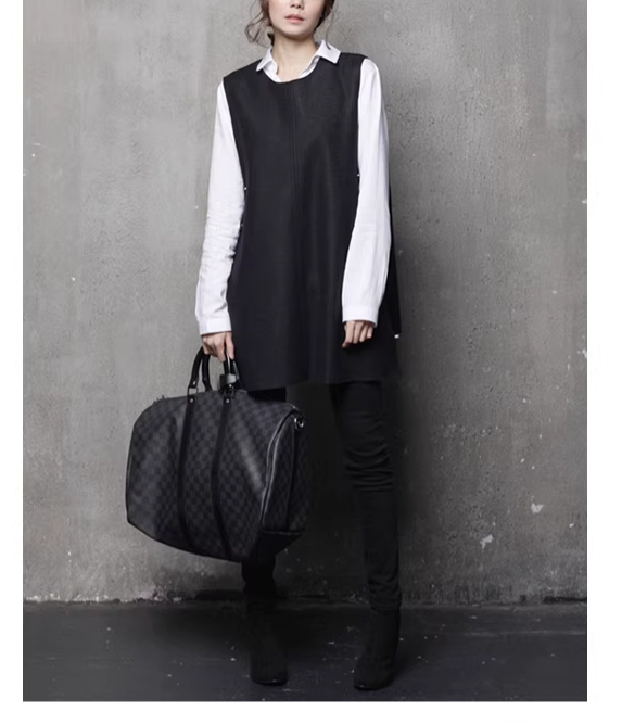 실사 2026 여름 새로운 패션 조끼 롱 스커트 루즈핏 쉬폰 프린트 민소매 레트로 중간 길이 드레스