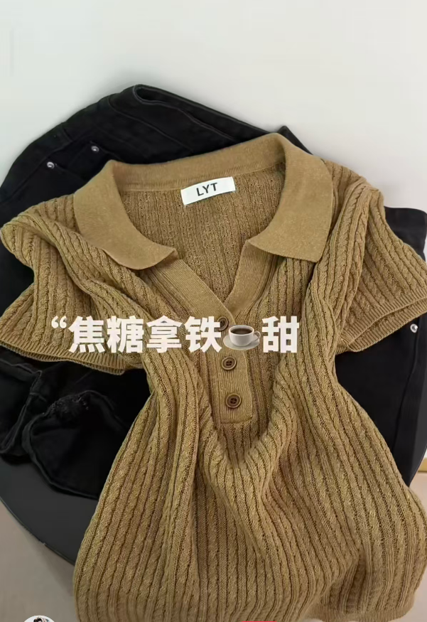 2026 여름 새로운 외국 가스 슬림해 보이는 폴로 칼라 단추 디자인 반팔 니트 스웨터 맨위 여성
