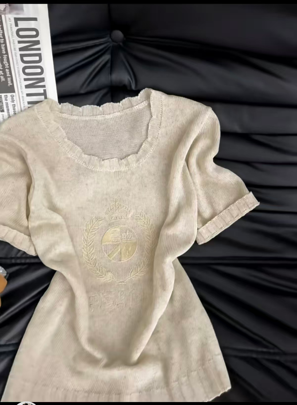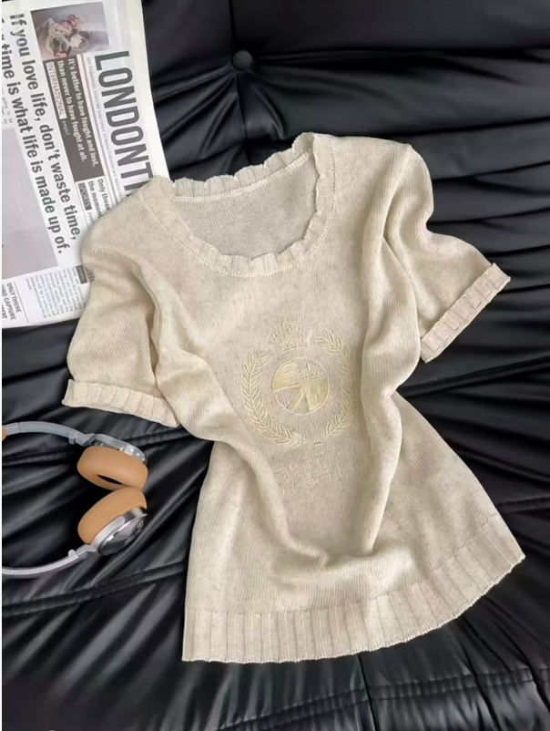 202 여름 6 새로운 패션 라운드 넥 반팔 니트 스웨터 여성 루즈핏 맞춤 슬림해 보이는 다용도 맨위 여성