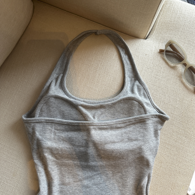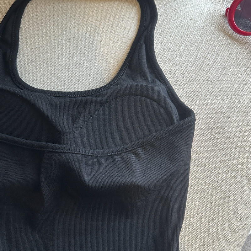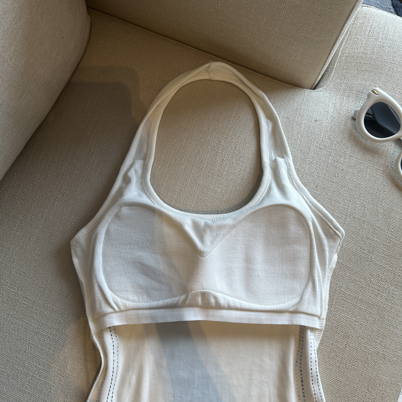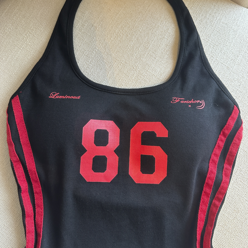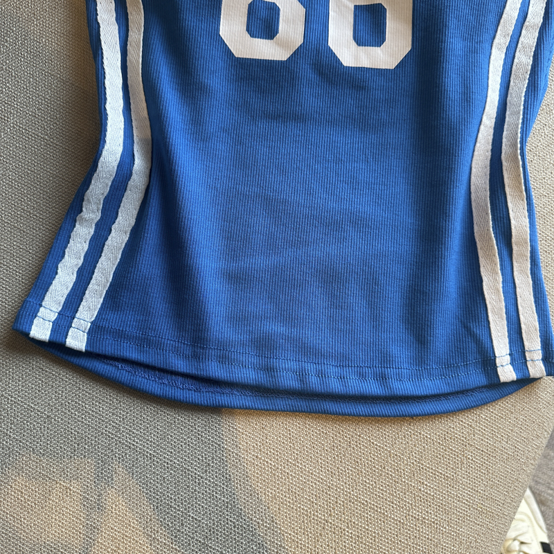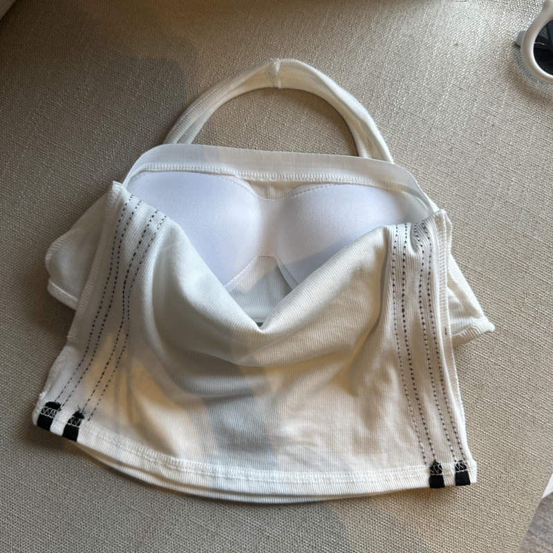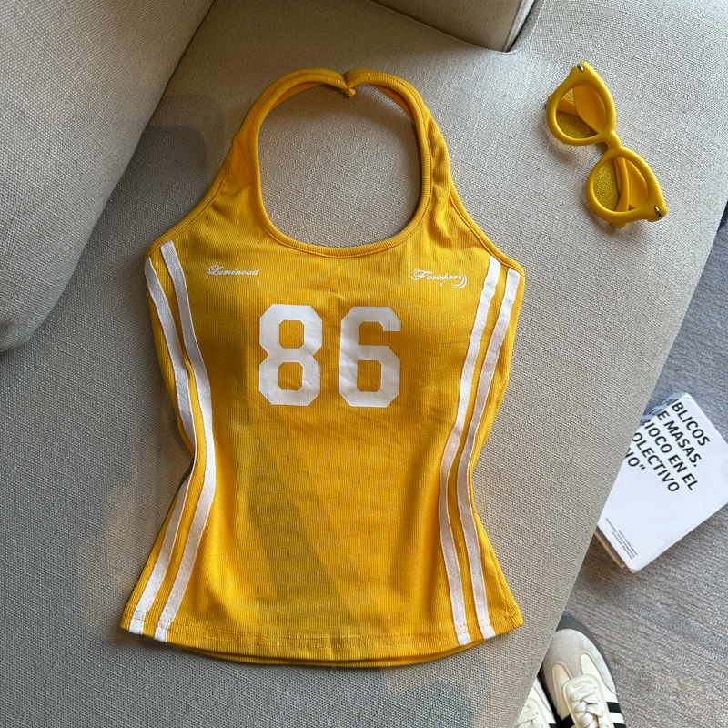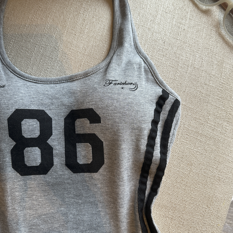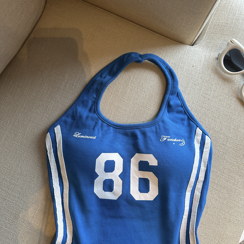 실사 핫걸 알파벳 프린트 캐미솔 여름 외출용 벨트 가슴 패드 행침 목 몸매 가꾸기 아름다움 뒤쪽에 의류