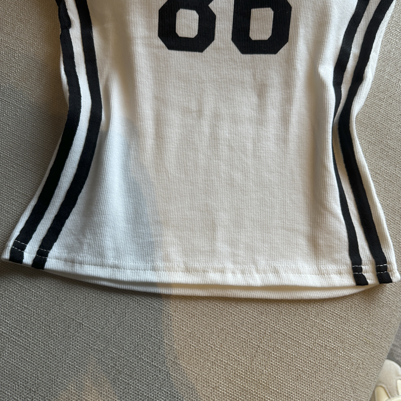 실사 2026 여름 한국 스타일 아메리칸 알파벳 프린트 뒤로 홀로우 아웃 어깨 패드 쇼트 스타일 슬림해 보이는 핫걸 티셔츠 맨위