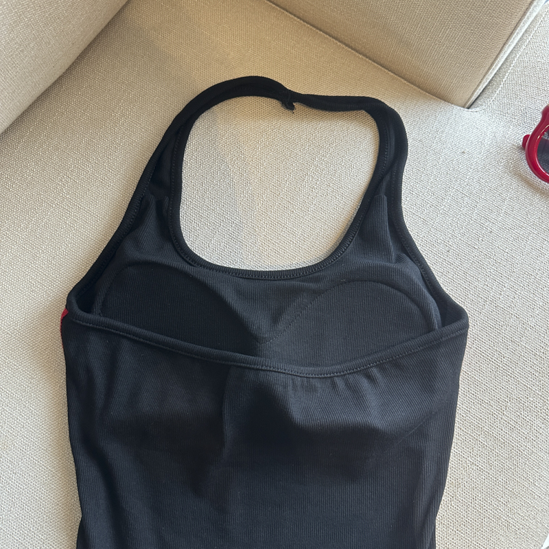 실사 페이크 레이어드 배색 니트 조끼 슬립 여성 벨트 가슴 패드 여름 외출용 몸매 가꾸기 쇼트 스타일 스트랩 맨위