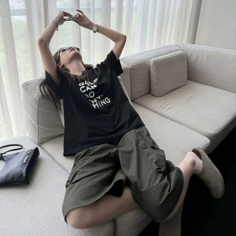 경관 그림 21 순면 210 그램 여름 드레스 한 부서 반팔 티셔츠 여성 한국 스타일 루즈핏 빅 사이즈 프린트