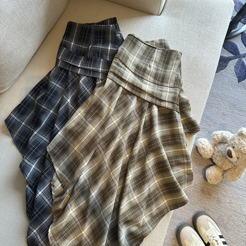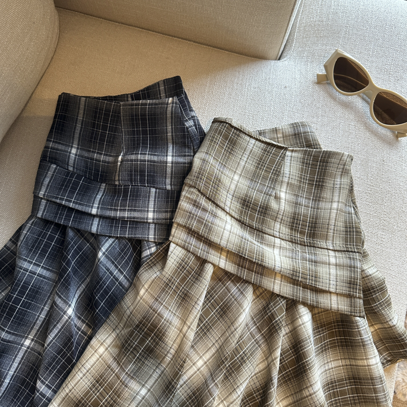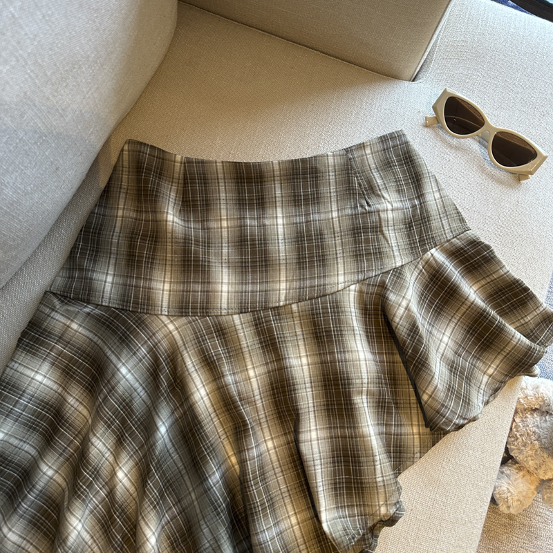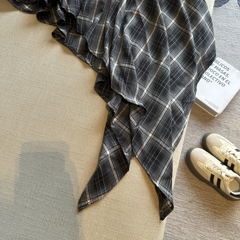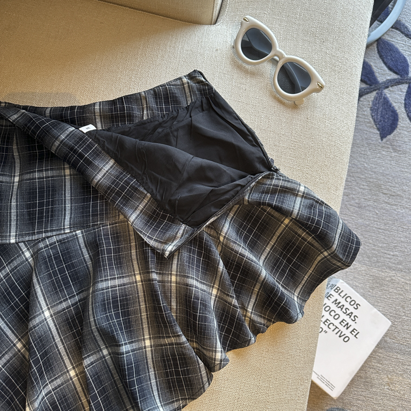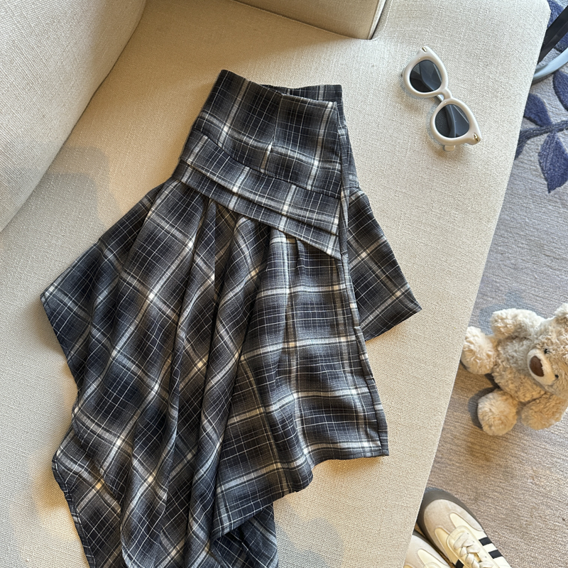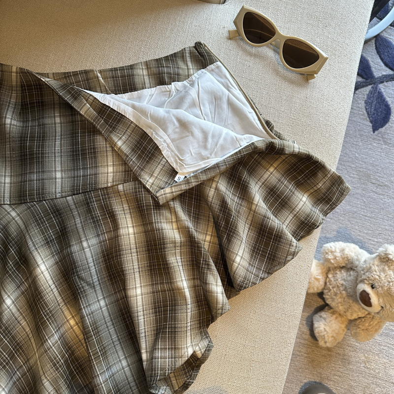 실사 레트로 체크무늬 불규칙 반신 스커트 여성 여름 하이웨이스트 핫걸 슬림해 보이는 타이트 스커트 한 마디 프릴 미니 스커트