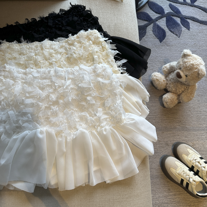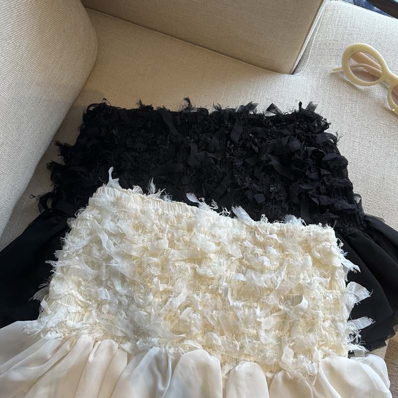 실사 디자인 센스 무거운 레이스 조각 다용도 리본 반신 스커트 여성 의류 봄 여름 얇고 가벼운 케이크 드레스