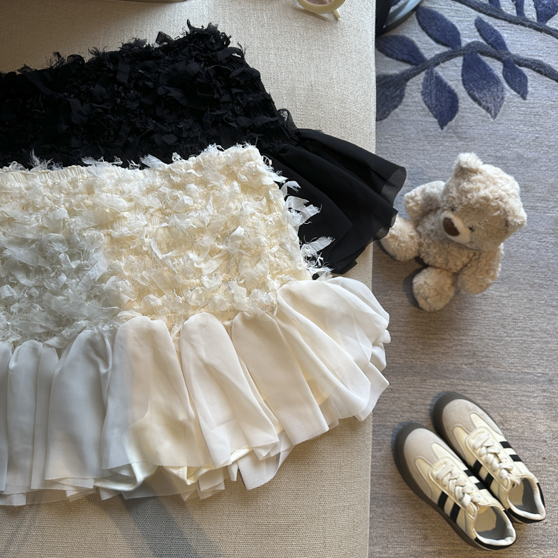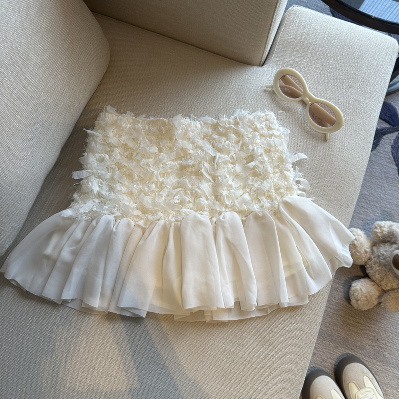 실사 2026 여름 주름 주름 종이 조각 프릴 슬림해 보이는 타이트 스커트 반신 스커트 미니 스커트