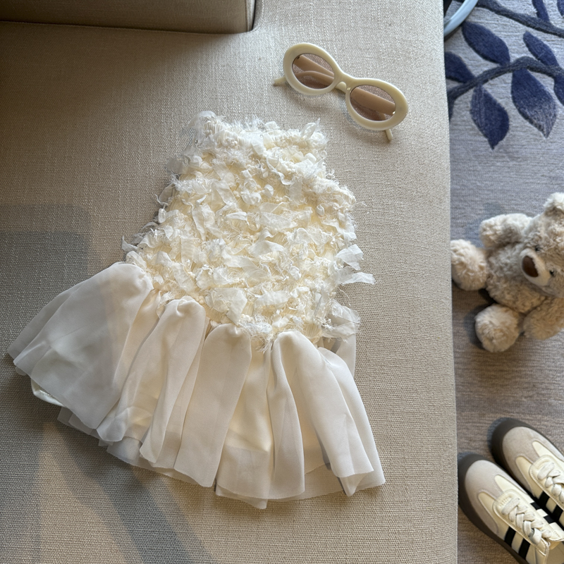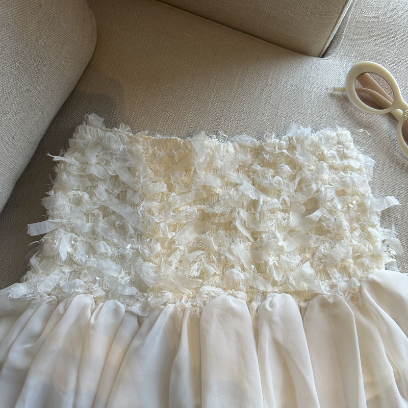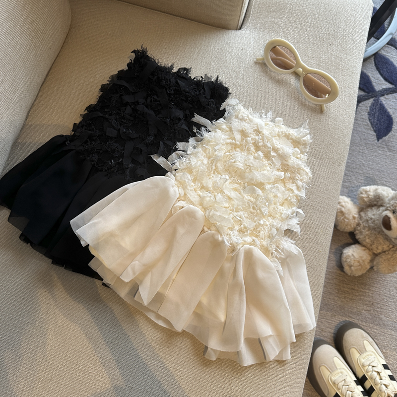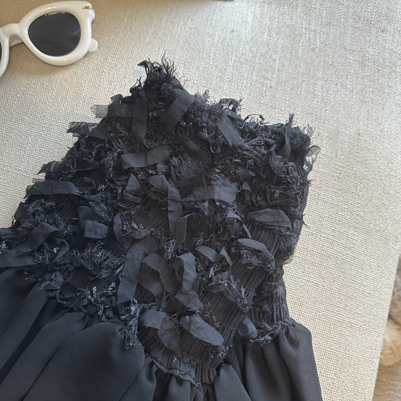 부유 한 가족 천 골드 고급 센스 검정색 민소매 조끼 원피스 여름 레이스 디자인 센스 허리 수축 한 마디 퍼프 스커트