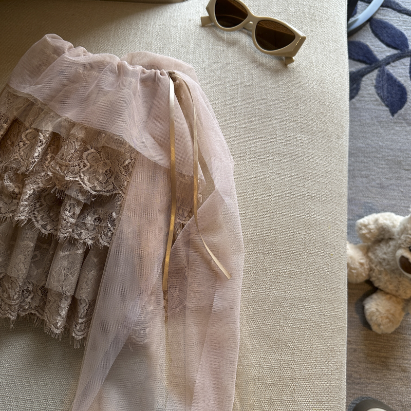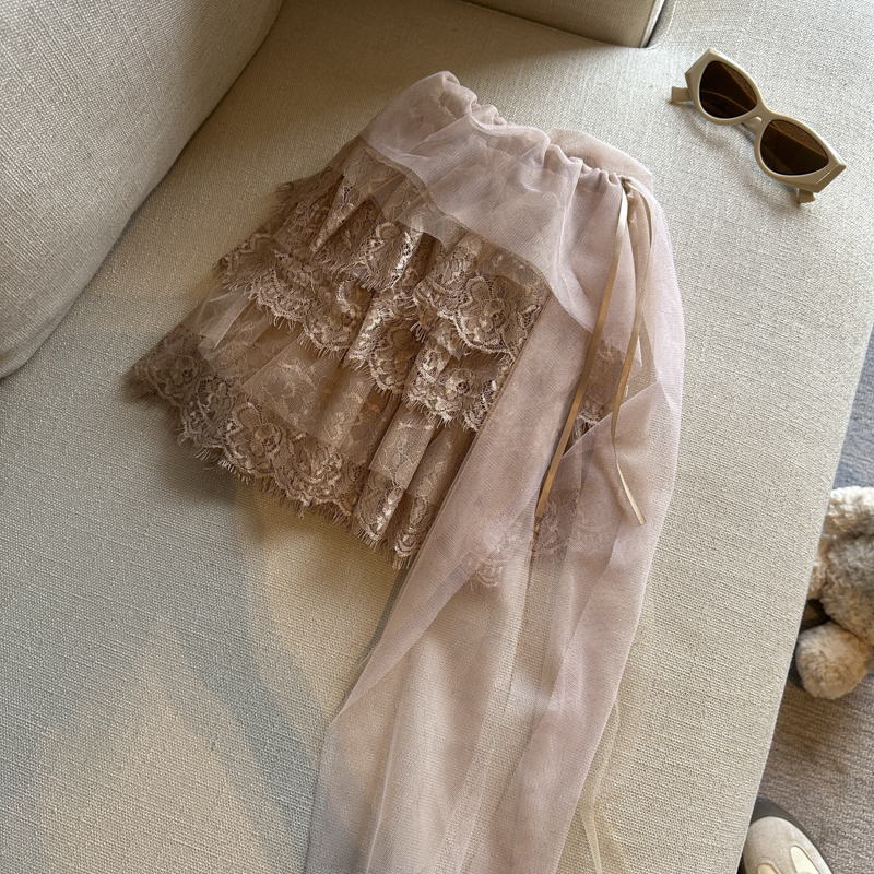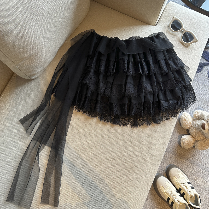 실사 디자인 센스 무거운 레이스 조각 다용도 리본 반신 스커트 여성 의류 봄 여름 얇고 가벼운 케이크 드레스