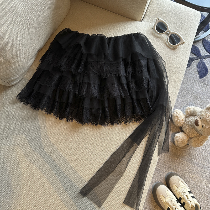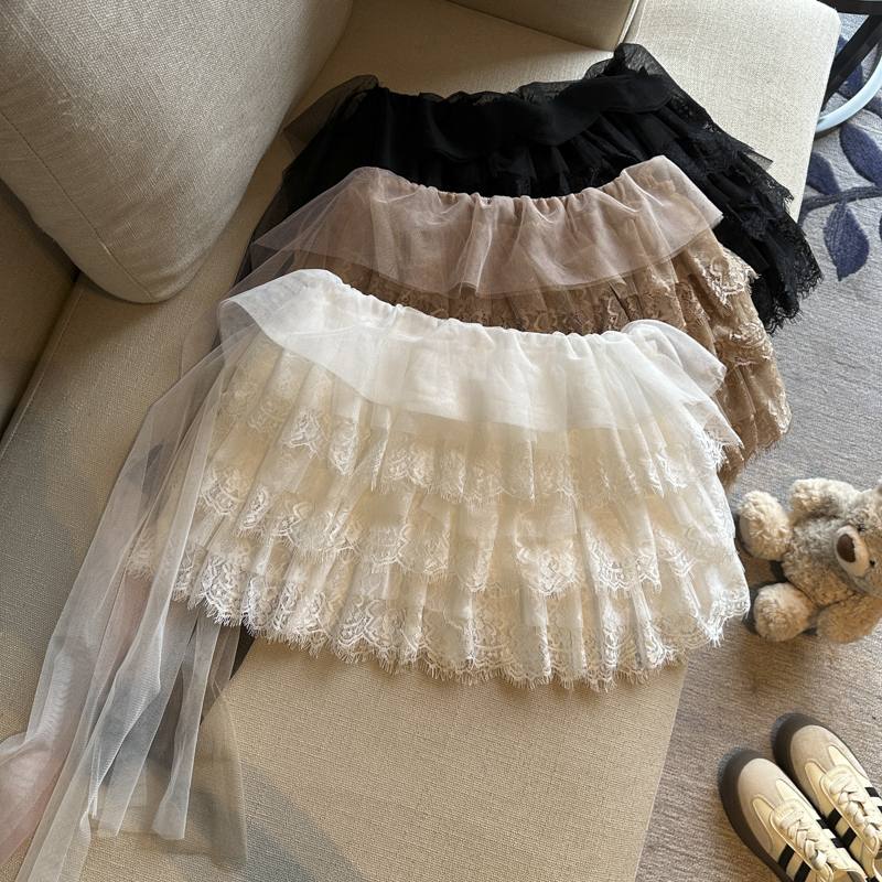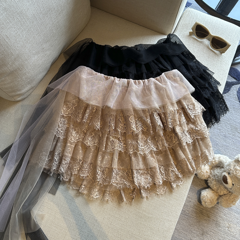 실사 프랑스식 레트로 레이스 레이스 반신 스커트 여성 2026 여름 섹션 하이웨이스트 한 마디 케이크 드레스 퍼프 미니 스커트