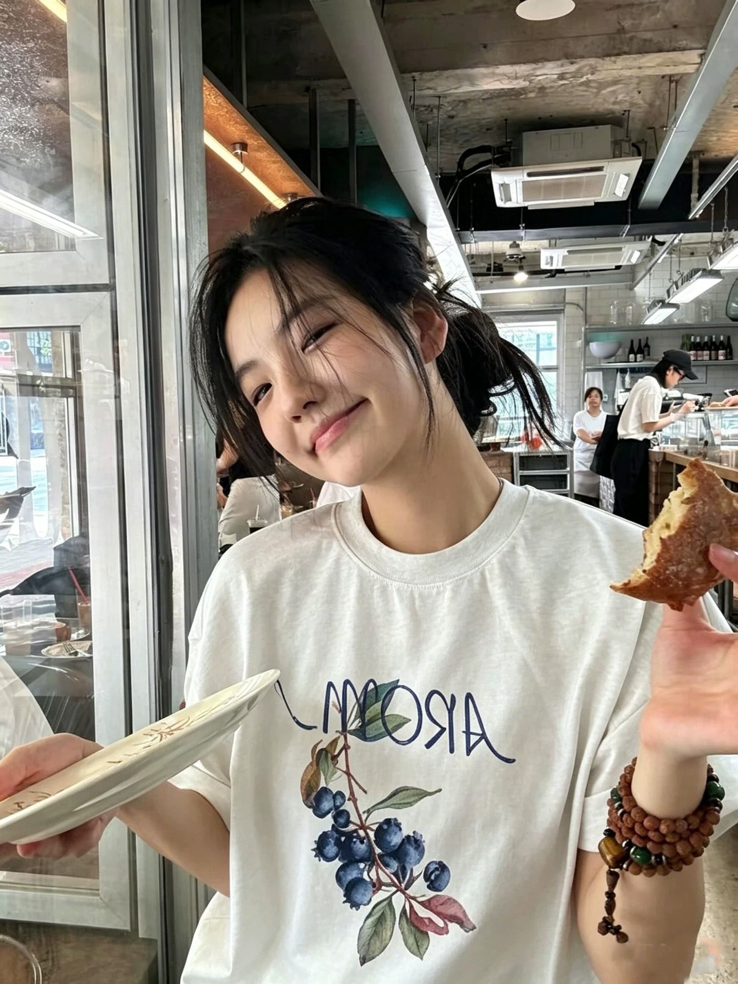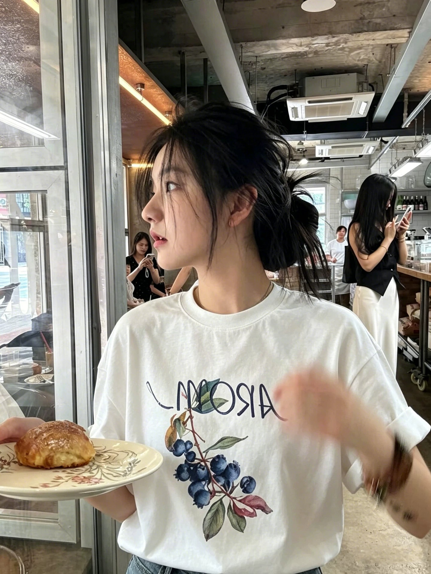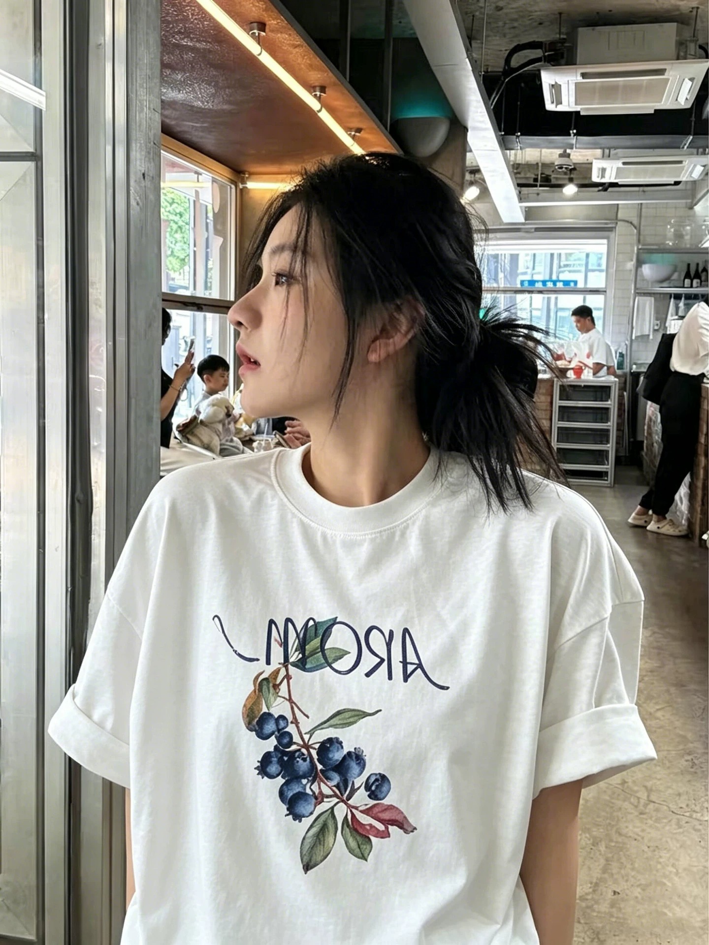 경관 그림 21 순면 210 그램 여름 드레스 한 부서 반팔 티셔츠 여성 한국 스타일 루즈핏 빅 사이즈 프린트