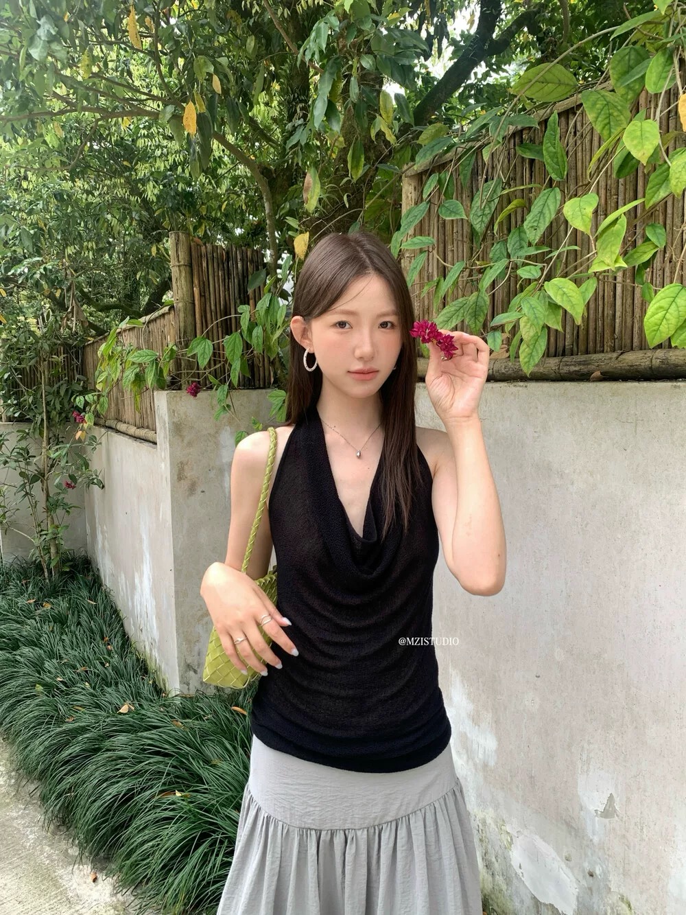 라이 경기 서울 흔들다 칼라 행침 목 니트 캐미솔 여름 페이크 레이어드 민소매 맨위 트렌디