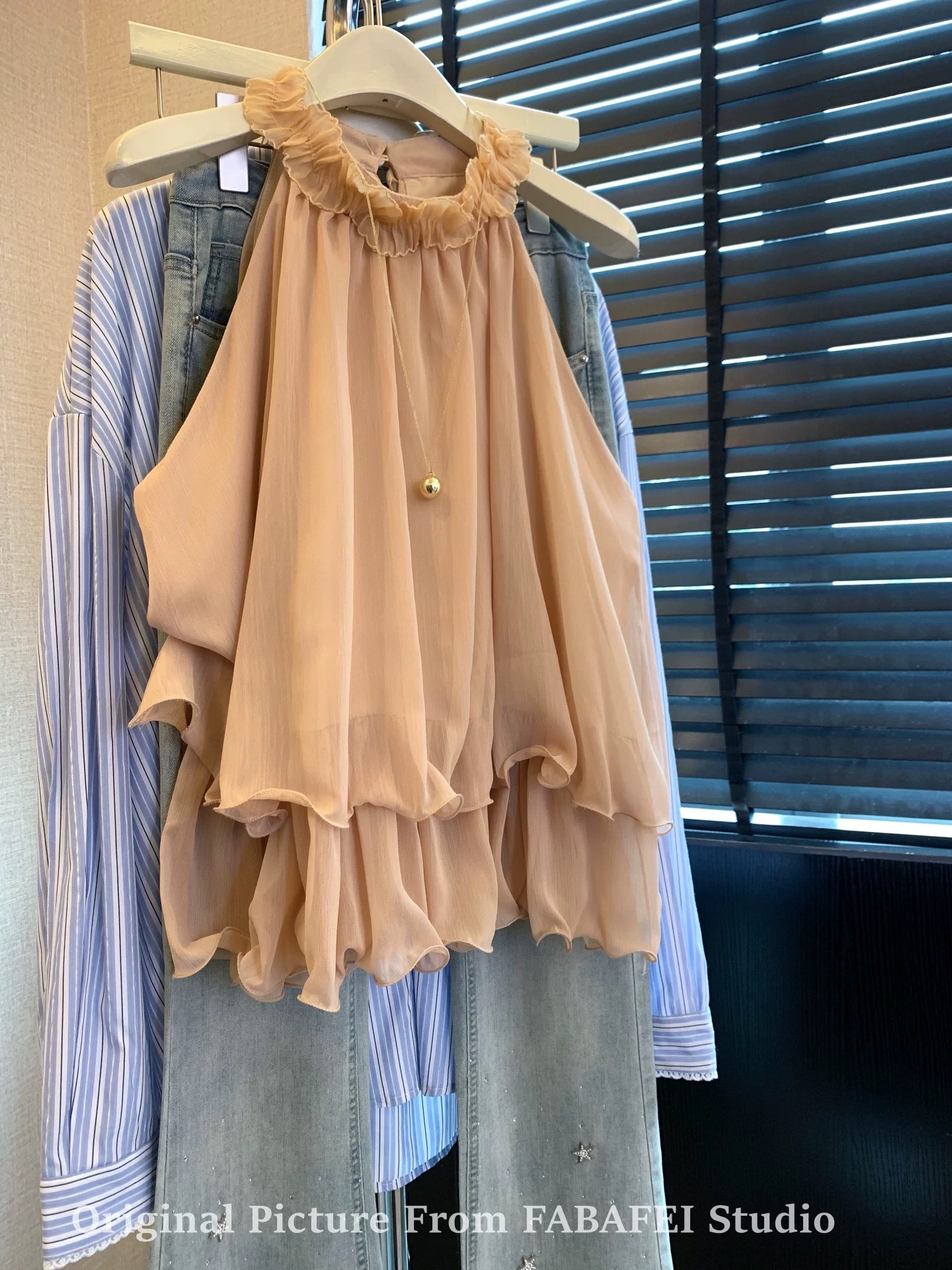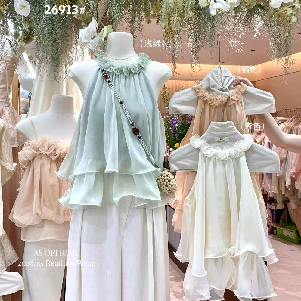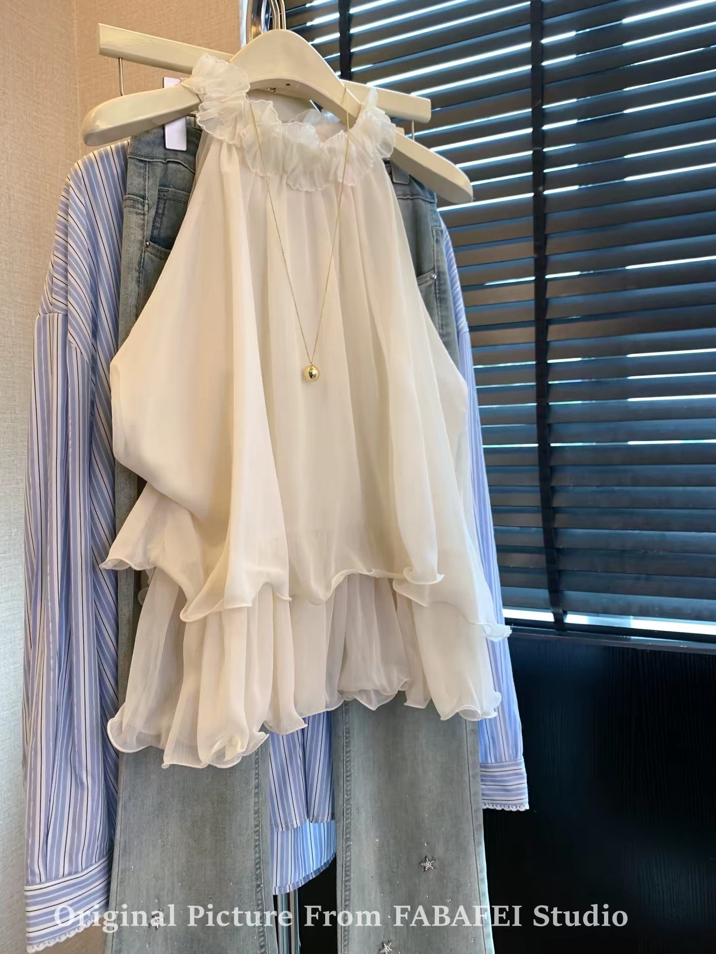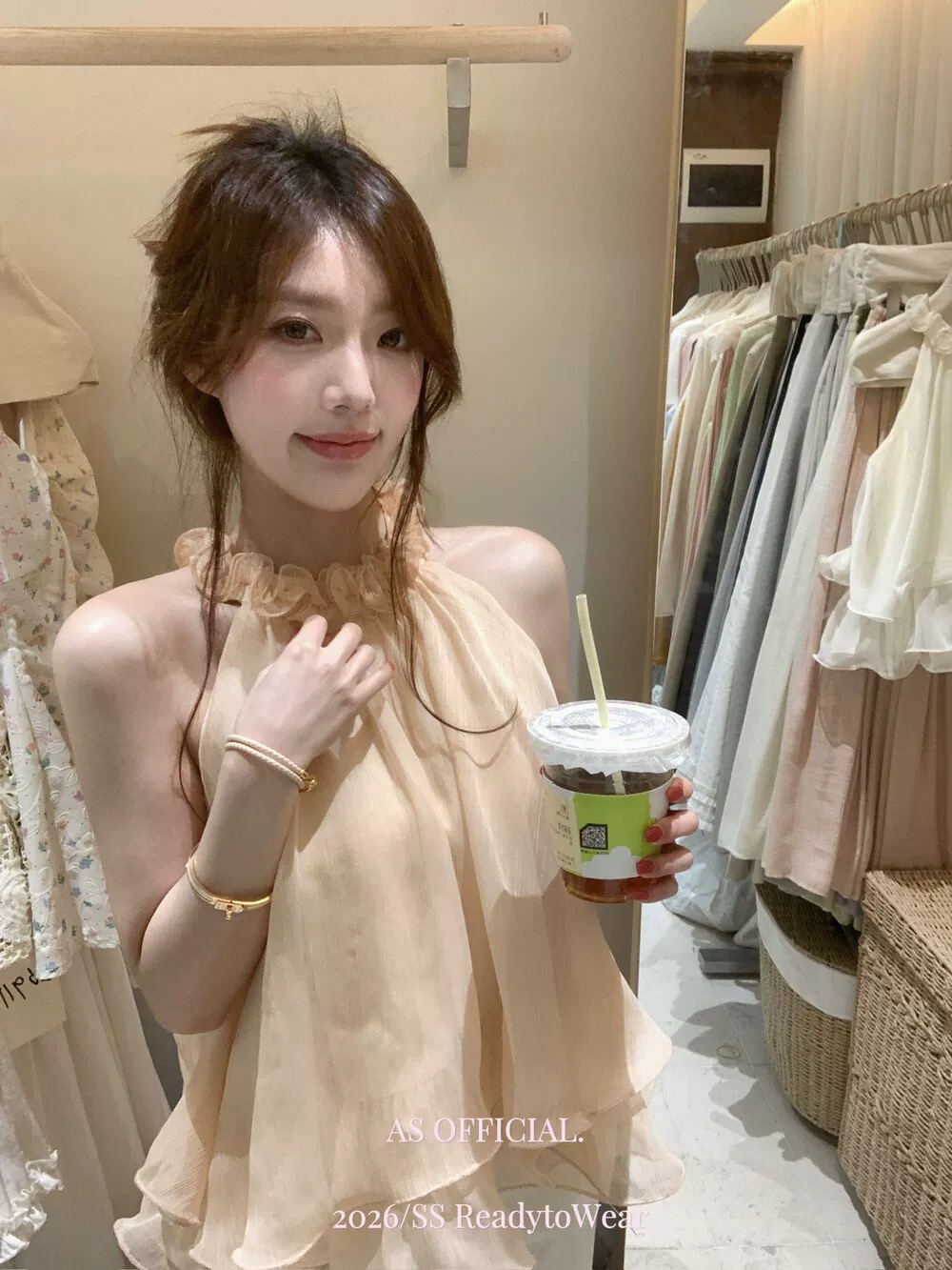 프랑스식 달콤함 부드러운 바람 행침 목 민소매 캐미솔 2026 여름 새로운 이중층 프릴 연령 감소 작은 셔츠
